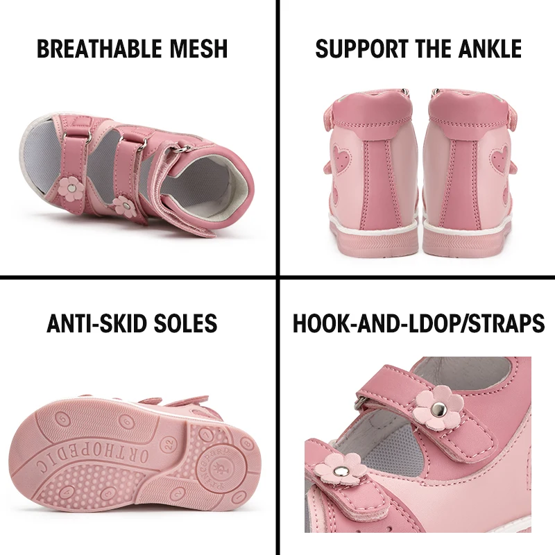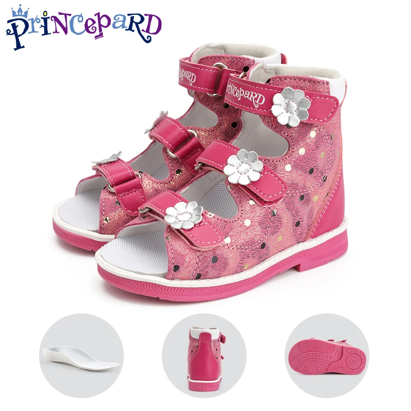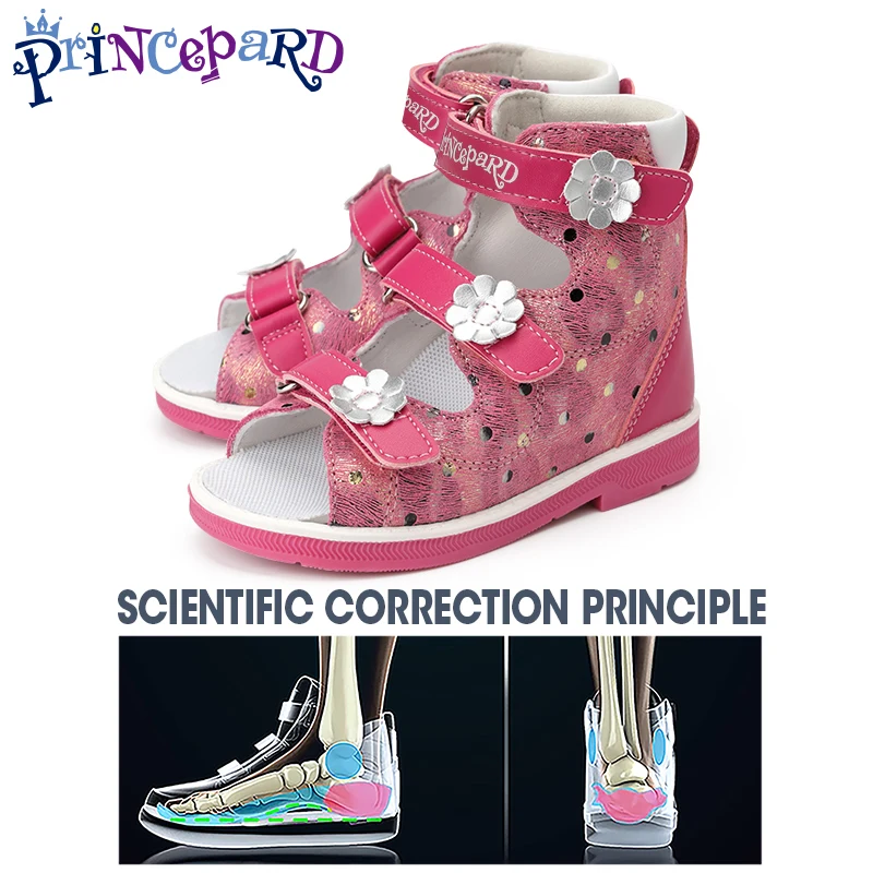 Child Orthopedic Sandals Princepard Girls Kids Corrective Shoes with High Back and Ankle & Arch Support Shiny Pink Pairing