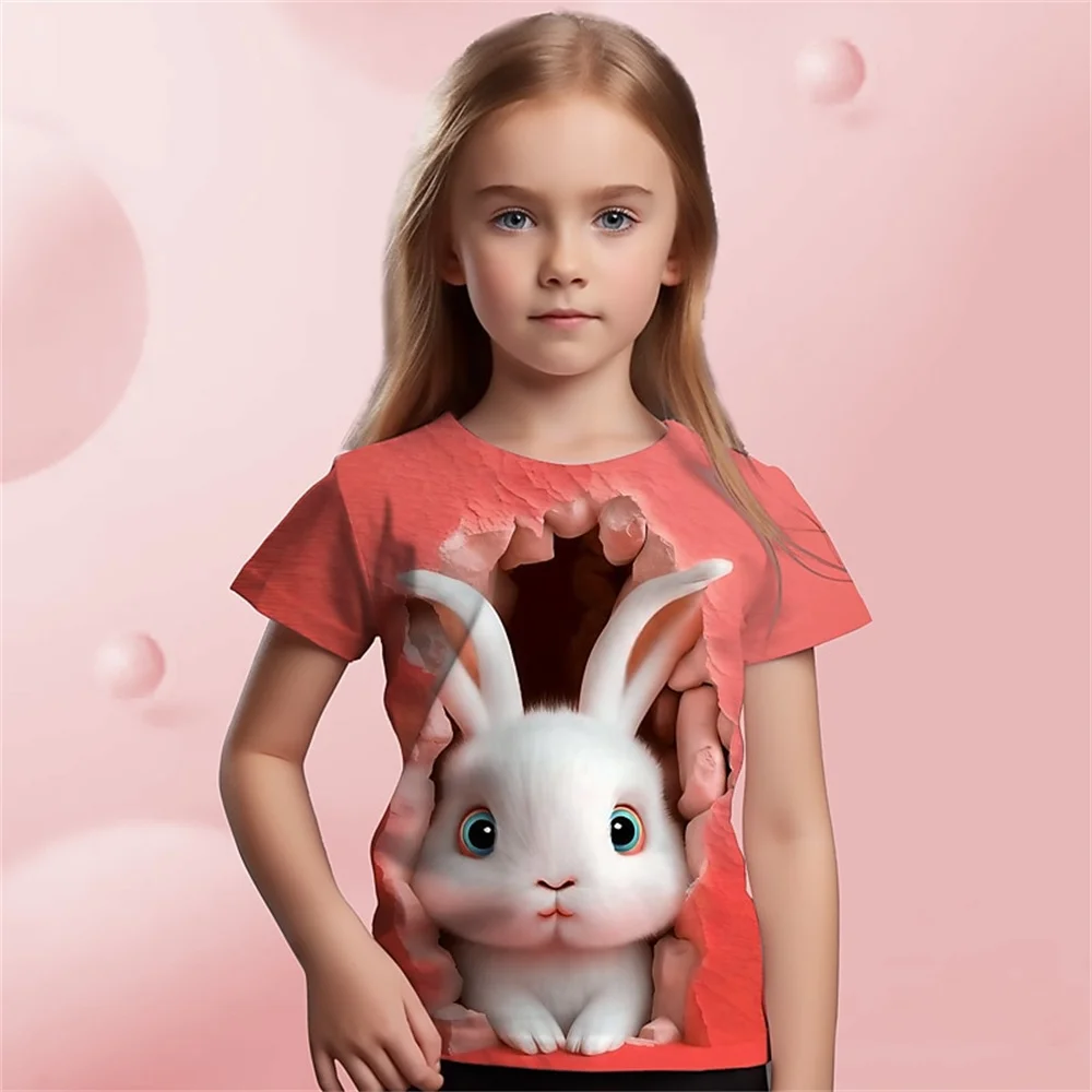 Children Clothes Girl Cute Bunny 3D Printed Fashion Comfortable Crew Neck Short Sleeve Tee Fun Children’s Clothing Girl T-Shirt