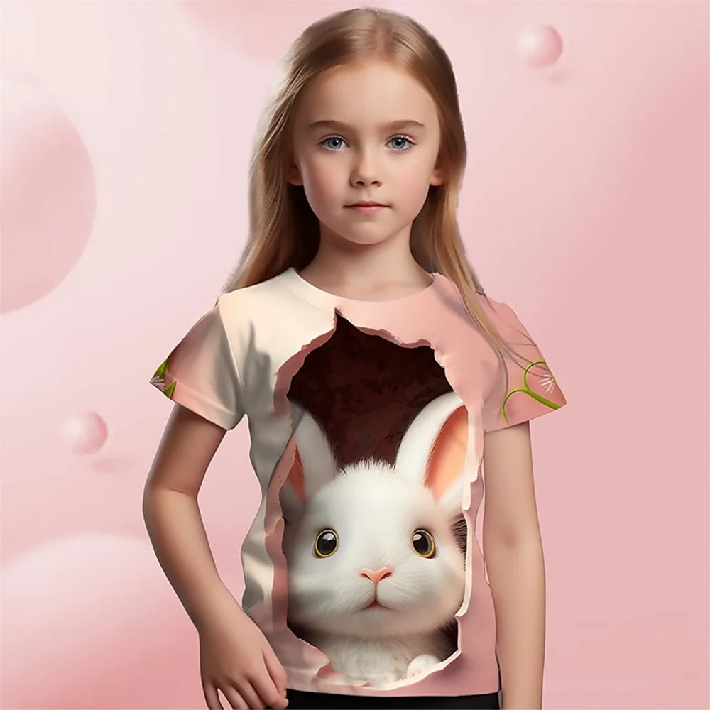 Children Clothes Girl Cute Bunny 3D Printed Fashion Comfortable Crew Neck Short Sleeve Tee Fun Children’s Clothing Girl T-Shirt