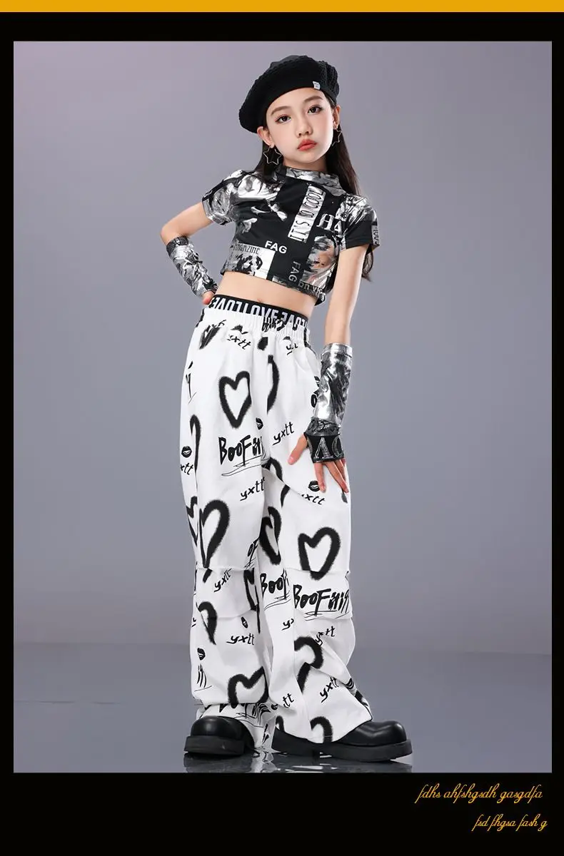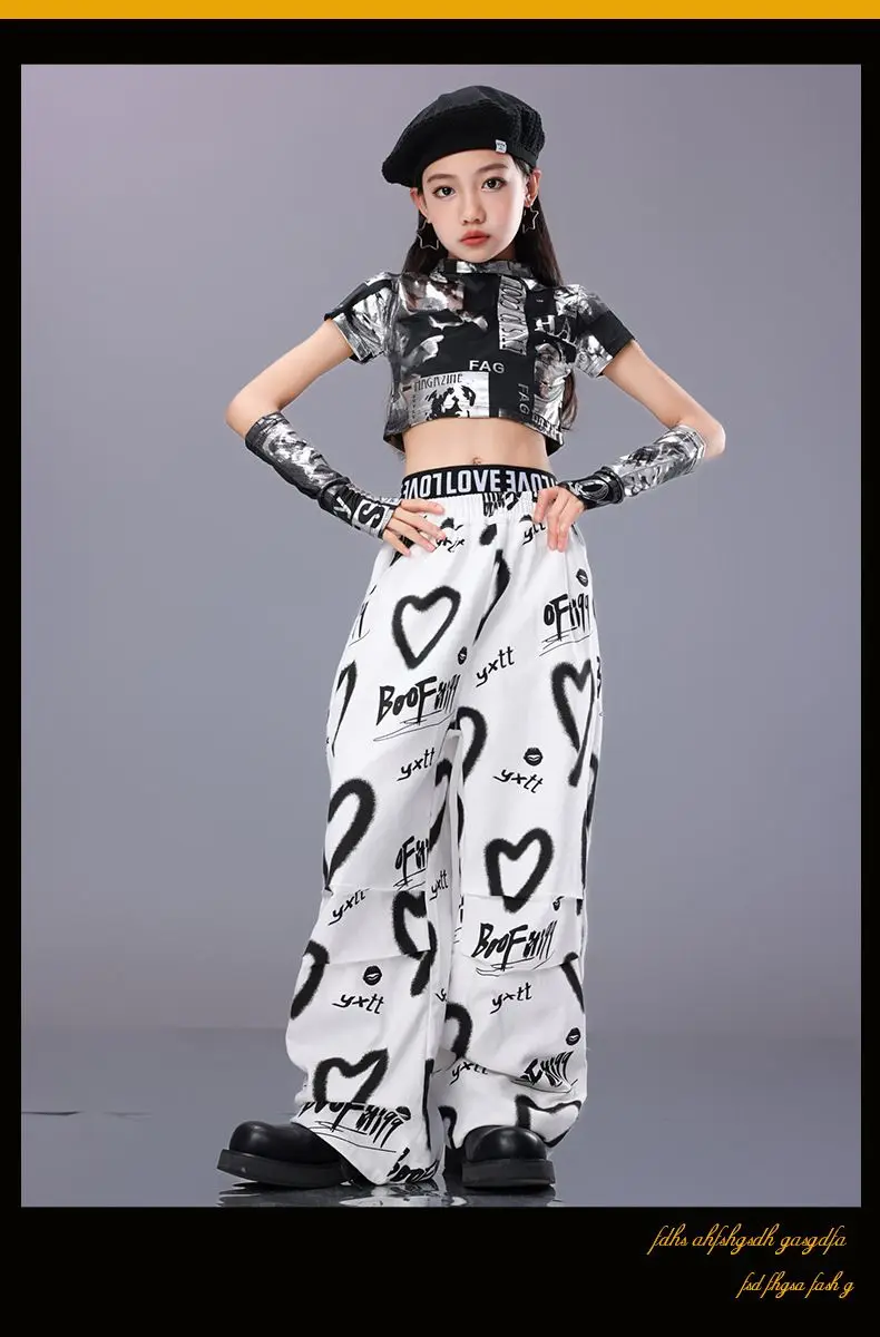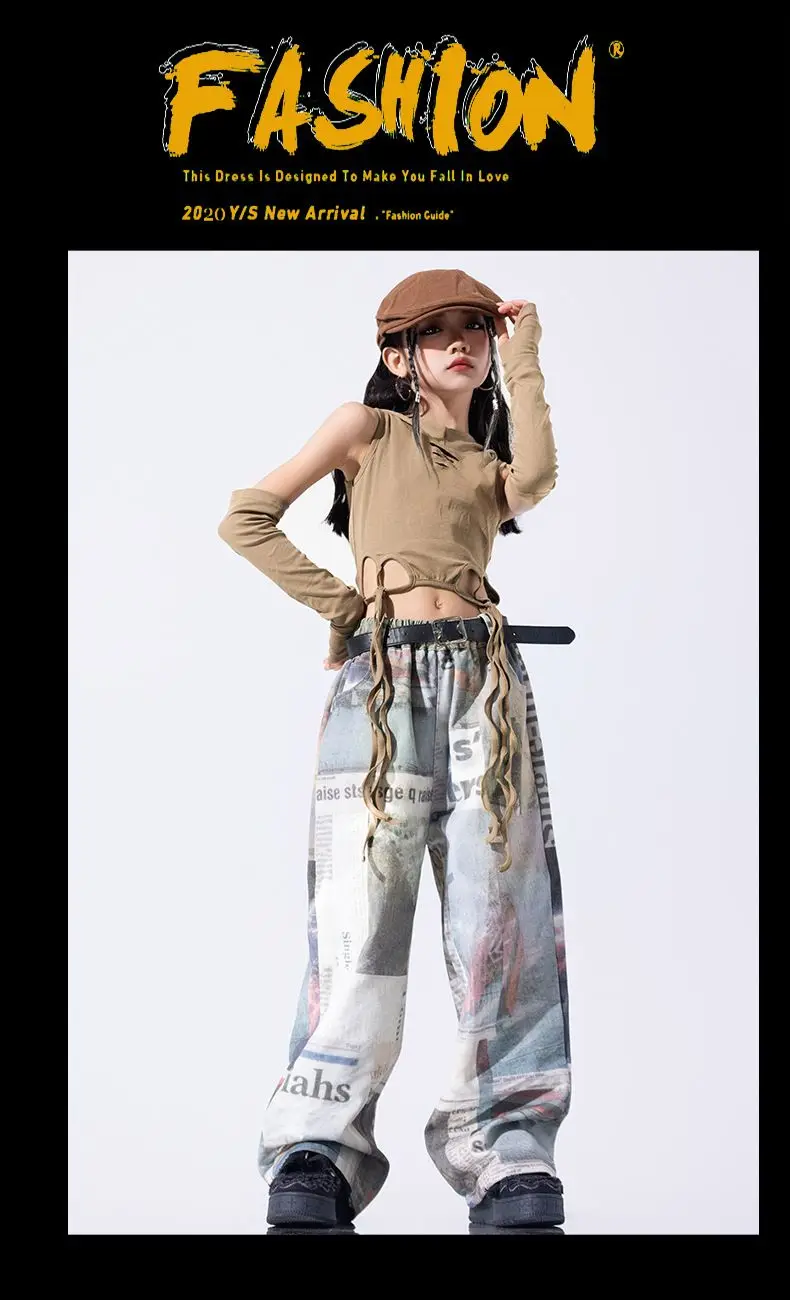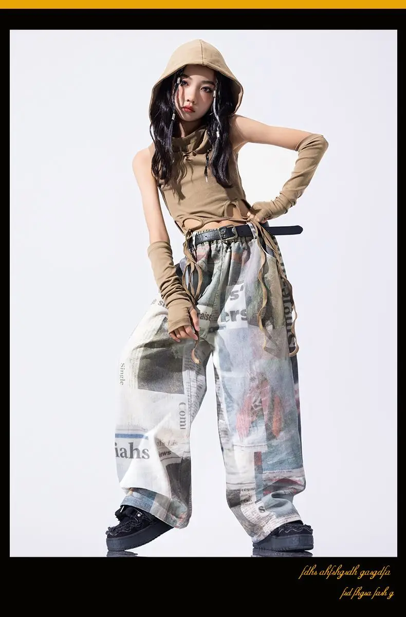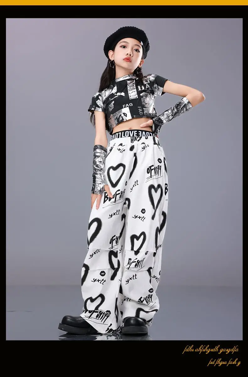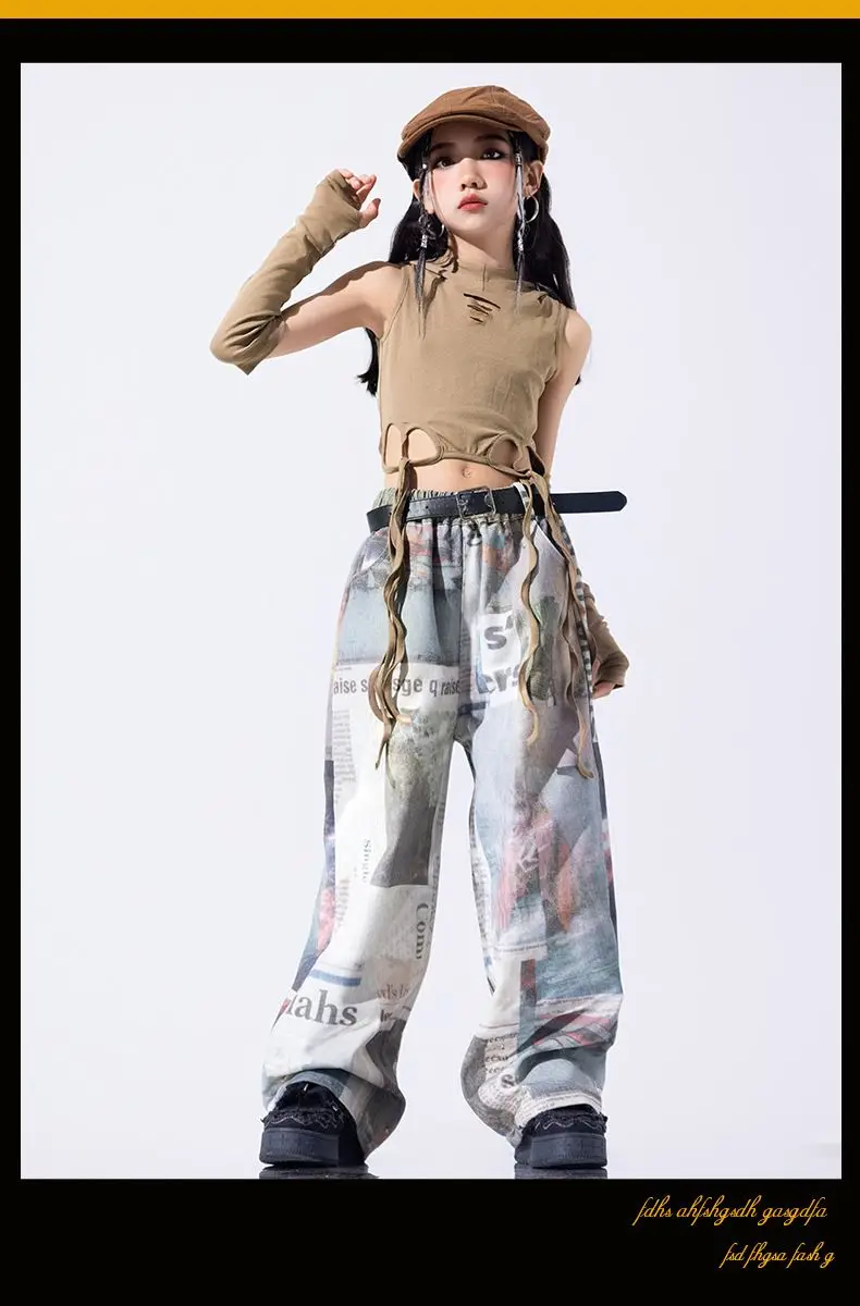Children Jazz Modern Dance Costumes For Girls Black Vest Yellow Cargo Pants Drum Sets Kids Hip Hop Dance Stage Clothes