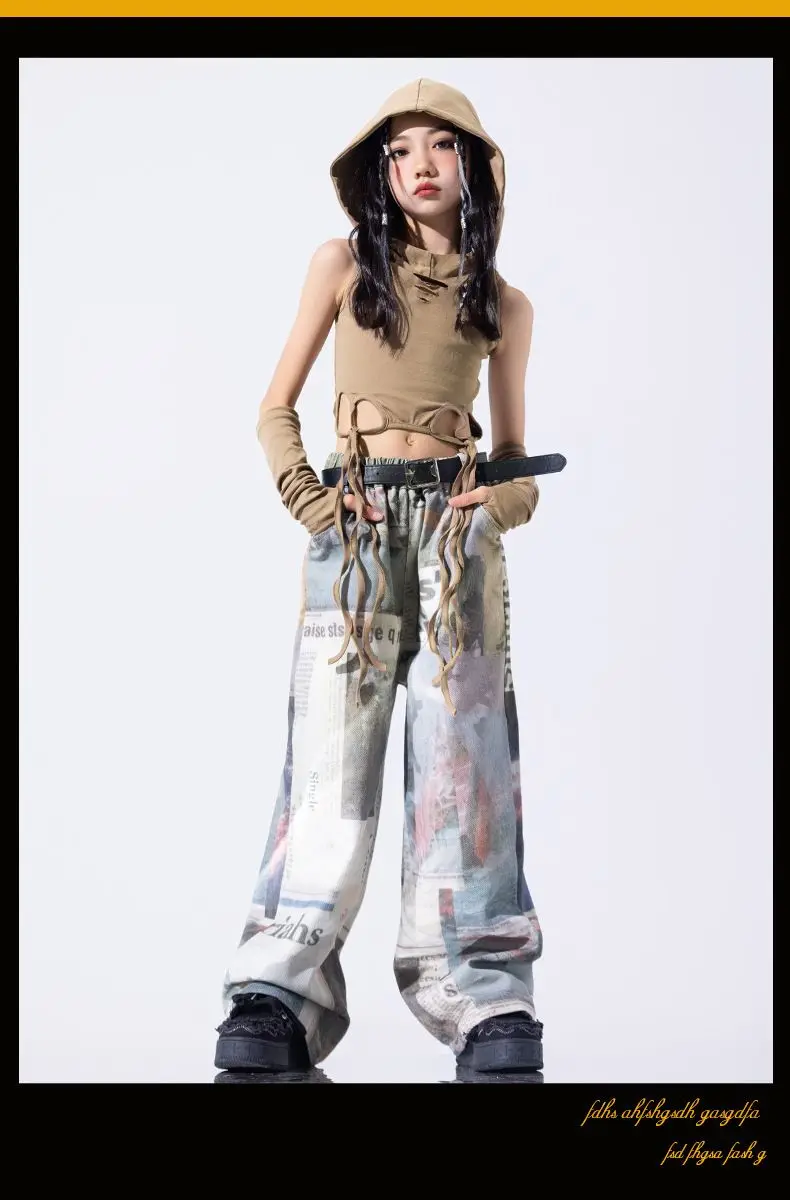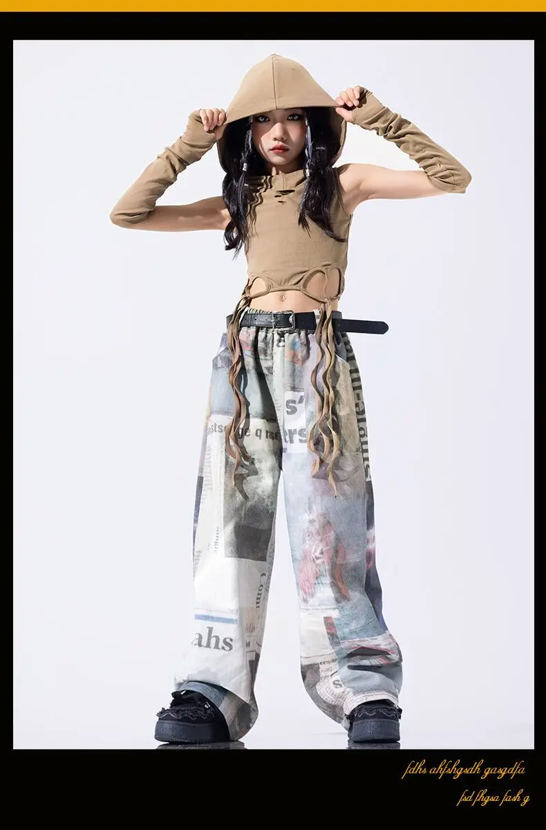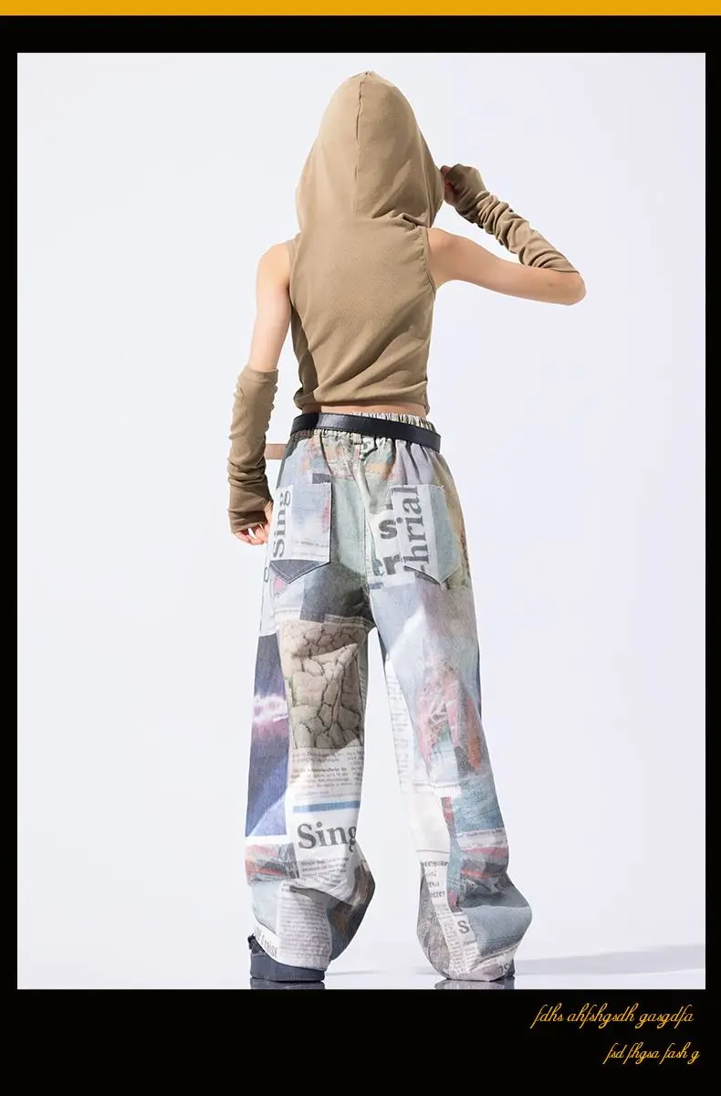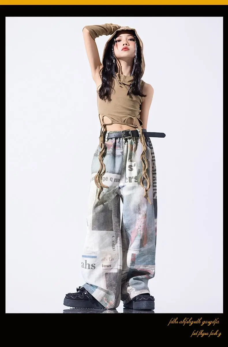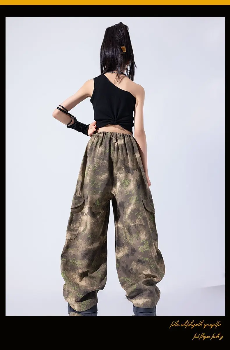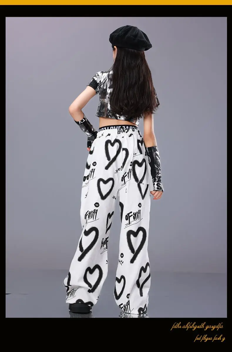 Children Jazz Modern Dance Costumes For Girls Black Vest Yellow Cargo Pants Drum Sets Kids Hip Hop Dance Stage Clothes