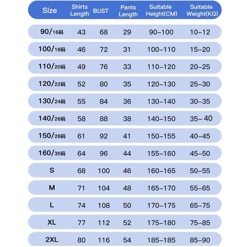 Kids size28:suitable for kids height 150-155cm, weight 40-45kg;