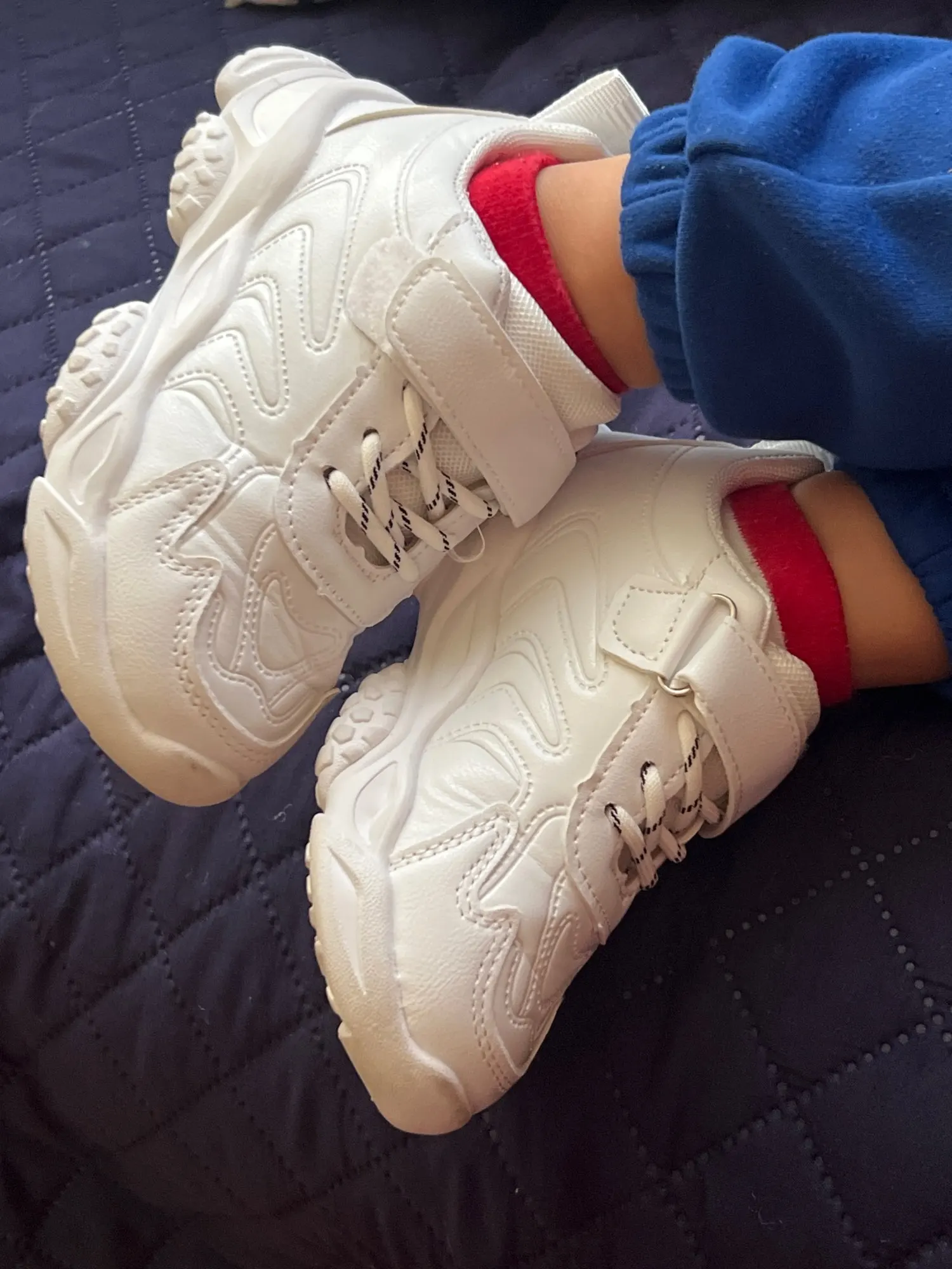4 reviews for Children White Running Shoes Kids Fashion Sneakers PU Soft Breatheable Comfortable Boys Girls School Sports Shoes Size 26-37