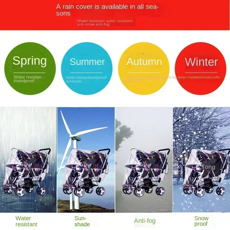 Children’s Carriage Twin Baby Stroller Rain Cover Double Front and Rear Seat Baby Trolley Windproof Cover
