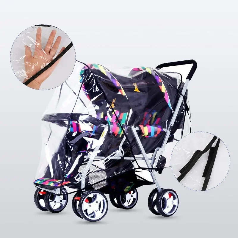 Children’s Carriage Twin Baby Stroller Rain Cover Double Front and Rear Seat Baby Trolley Windproof Cover