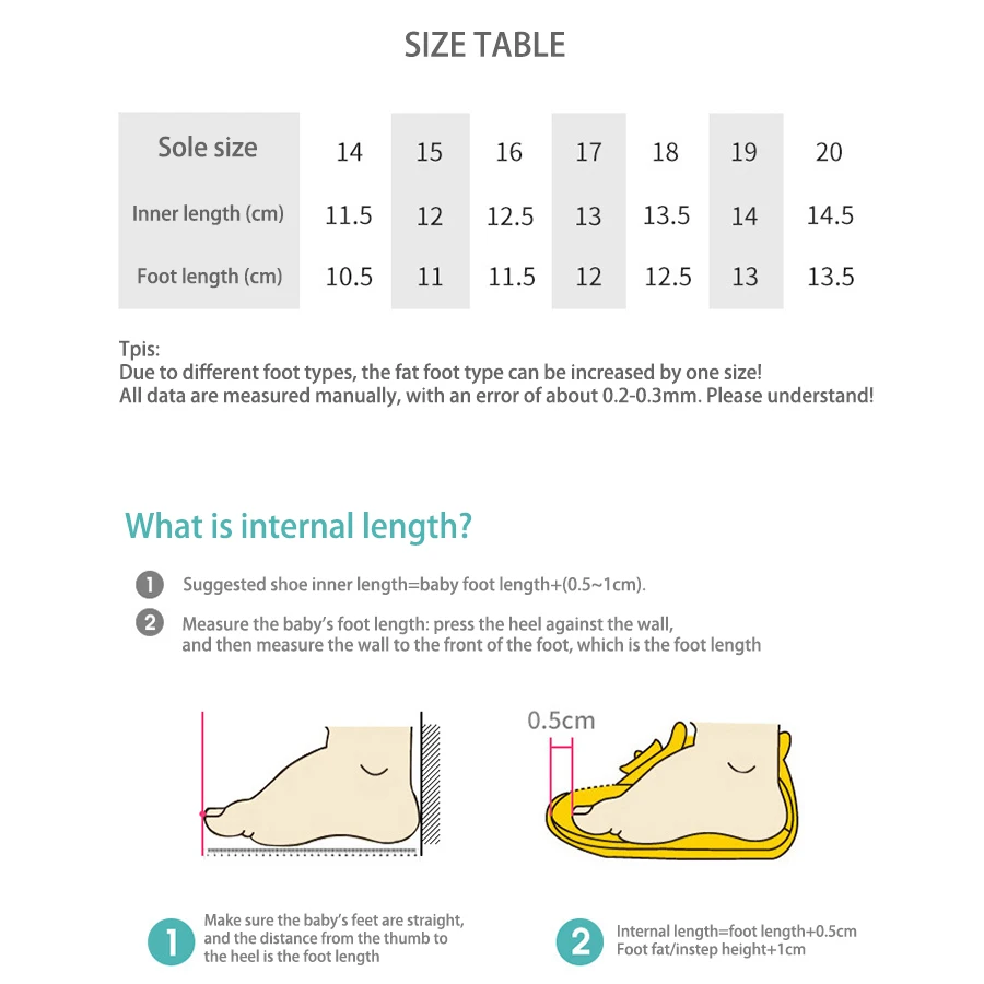 Children’s shoes can be purchased by adding 0.5-1cm to their feet.