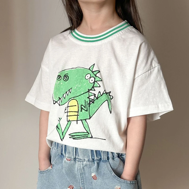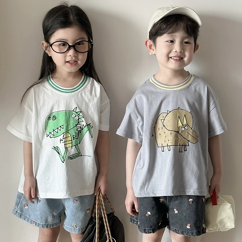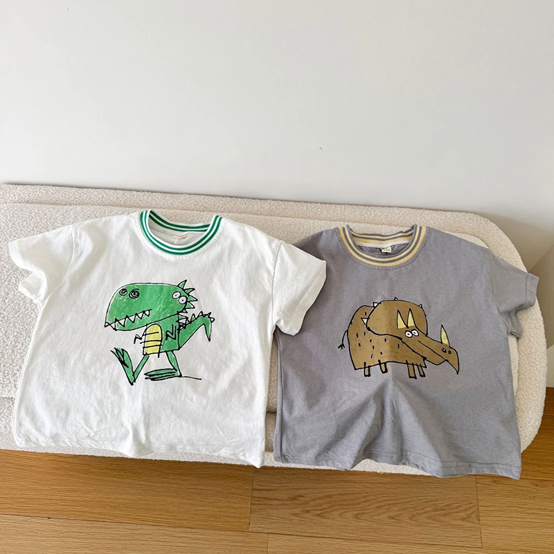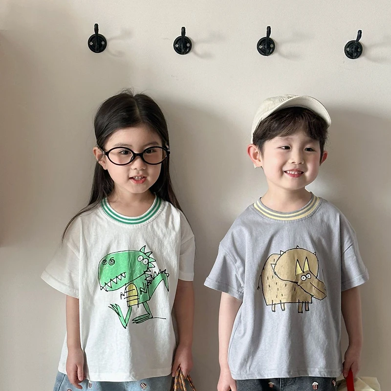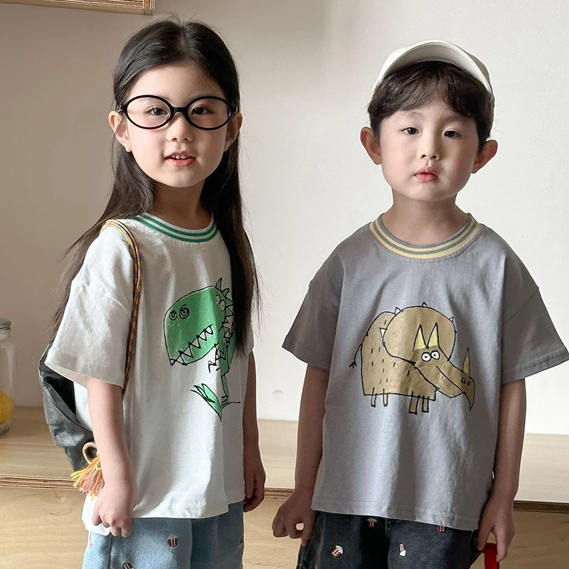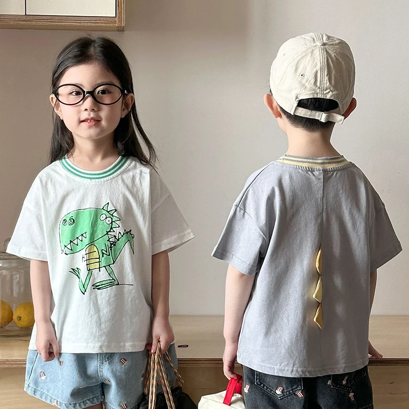 Children’s Short Sleeved T-shirt 1-10Y Summer Cotton Girls Tees Cartoon Dinosaur Print Boys’ Loose Tops Kid’s Clothing