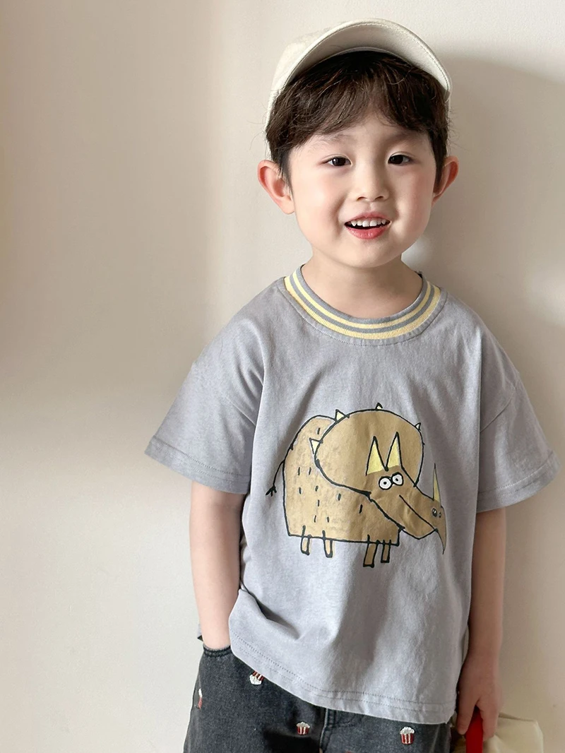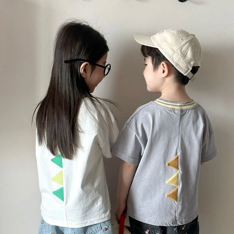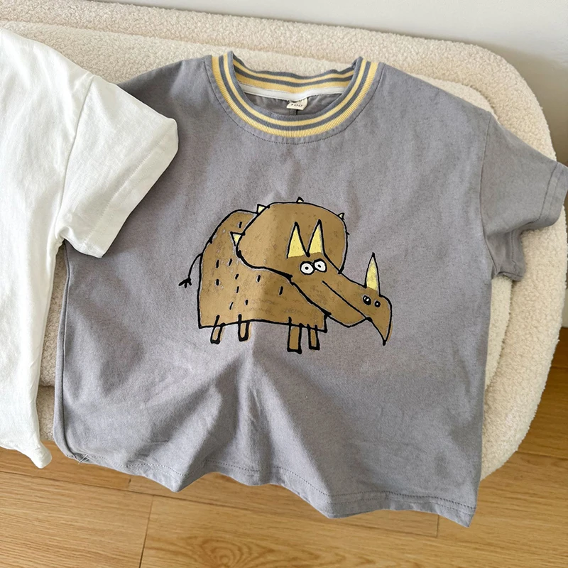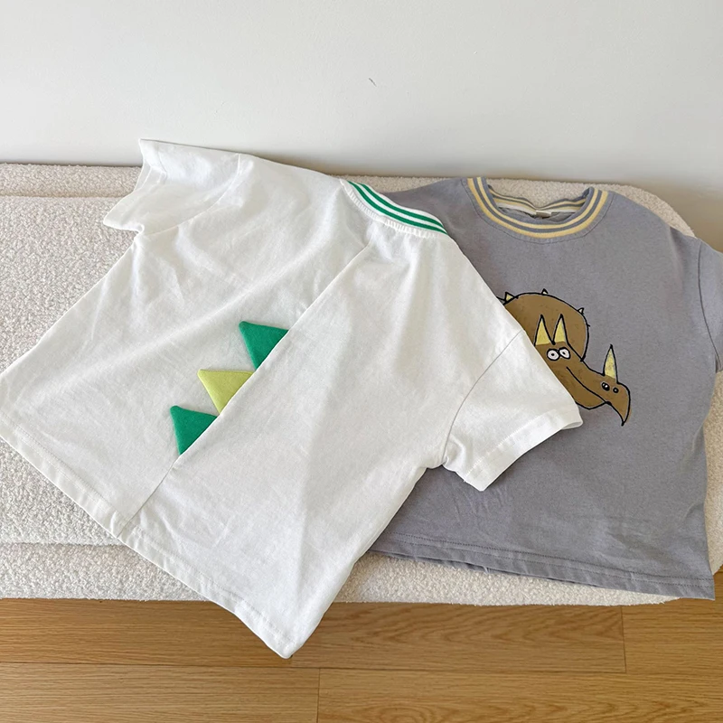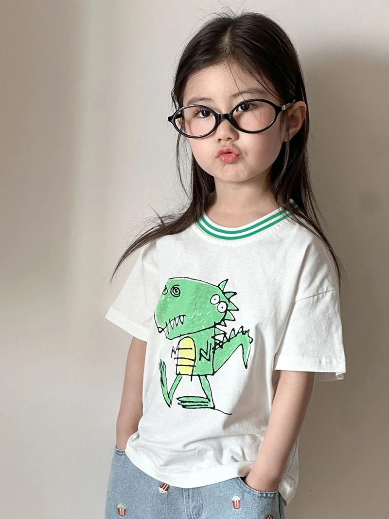Children’s Short Sleeved T-shirt 1-10Y Summer Cotton Girls Tees Cartoon Dinosaur Print Boys’ Loose Tops Kid’s Clothing