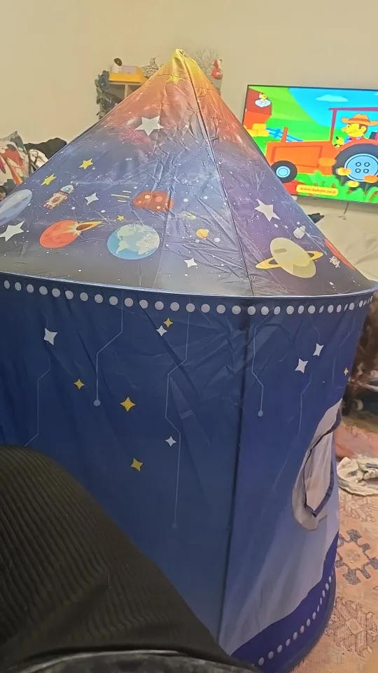 I loved the large rocket tent made of good material. Easy to set up, my little one was fascinated. I recommend the seller and the store. It arrived ahead of time, very satisfied with the purchase. Thank you, thank you, thank you.