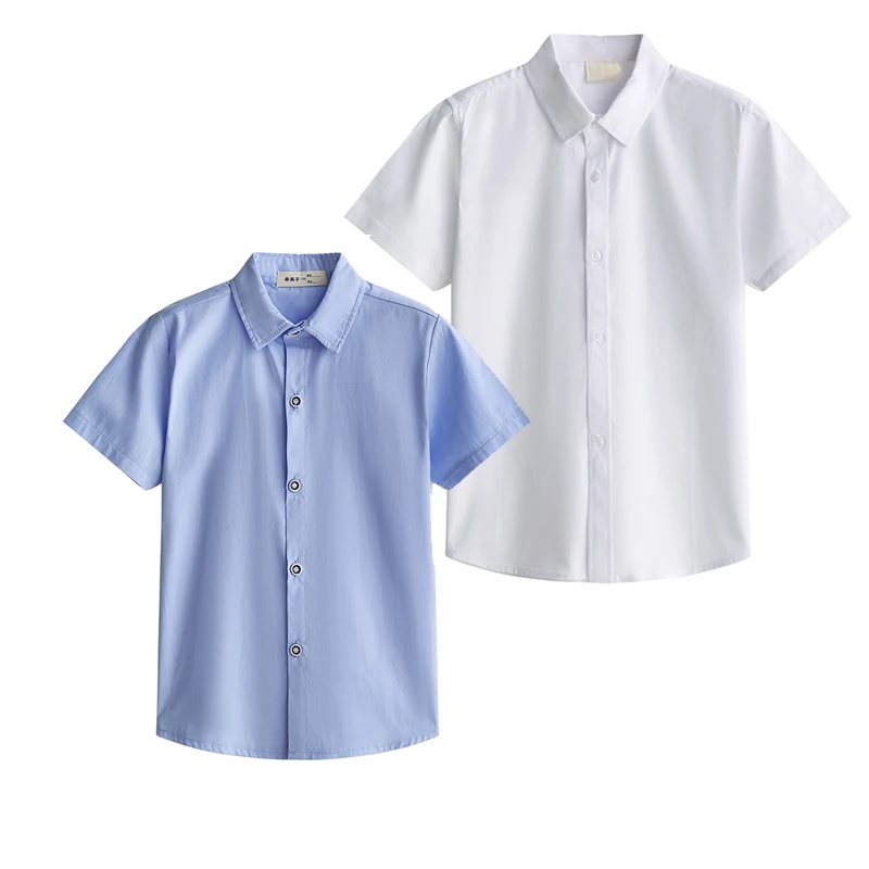 Children’s White Shirt Boys’ Short Sleeves Middle School Student Blue Tops Summer Performance Graduation Primary School Uniforms