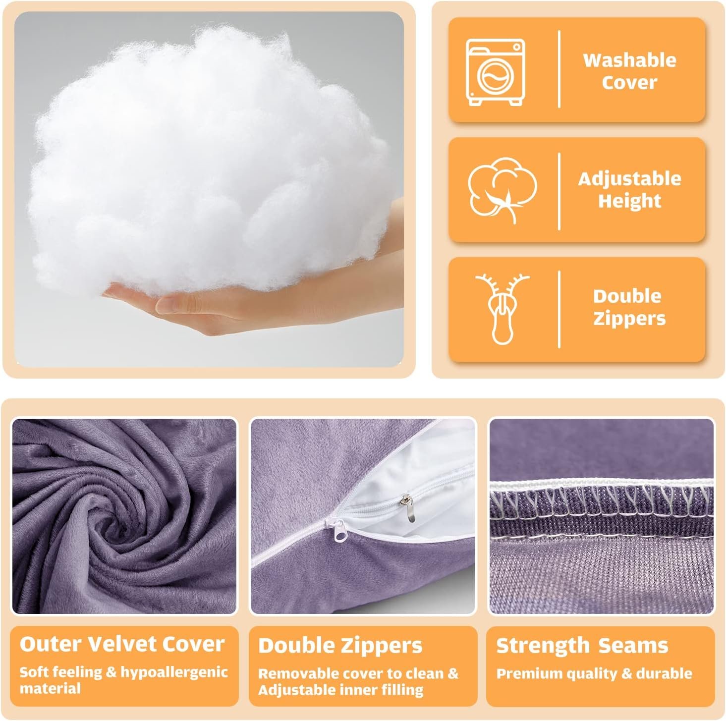【REMOVABLE & WASHABLE MATERNITY PILLOW COVER】 This maternity pillow for adults that pregnancy must haves as maternity pillows for sleeping full body and body pillows for pregnant women with zippers at both sides body pillow cover will never clump, even after repeated washing, so you can look forward to long lasting clean comfort body pillows and simply throw the maternity pillow for pregnant women into a normal washing machine and dryer for cleaning. Hassle-free maternity pillow u shape!