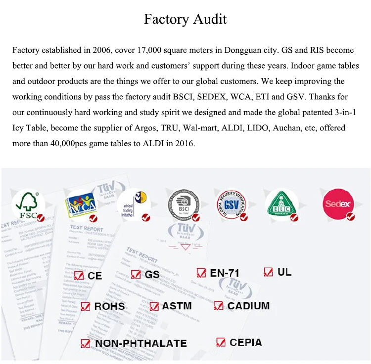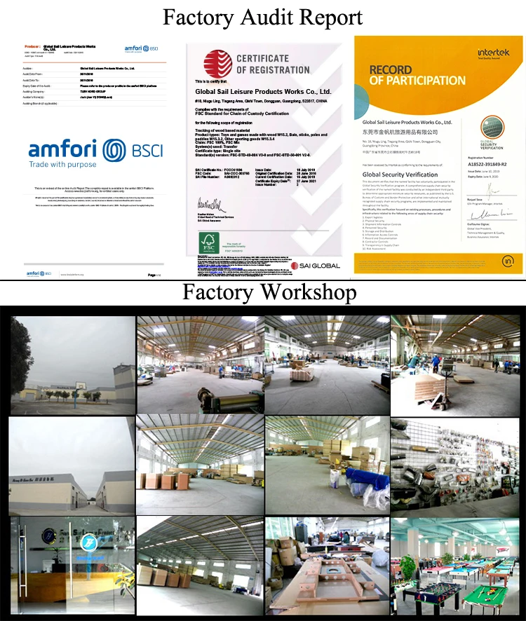 DONGGUAN GLOBAL SAIL LEISURE CO., LTD is located in the Pearl River Delta in the South of China (Dongguan area), covers an area of 17000 square meters. We have over 17 years of industry experience, and is committed to the research and development of multi game tables, Soccer tables, billiard tables and so on. we have also participated in fairs around the world every year, to meet our client and share our latest idea of the future corporation solution. We are one of the largest professional manufacturers of sports goods in the area. Our corporate philosophy emphasizes building a long-term strong relationships with all of our customers. Our emphasis on quality control and innovative new product development has earned us an excellent reputation in all of the markets that we serve. We work closely with all of our customers in order to provide the exact products and services that they require. so we have established a good cooperative relationship with our customers.