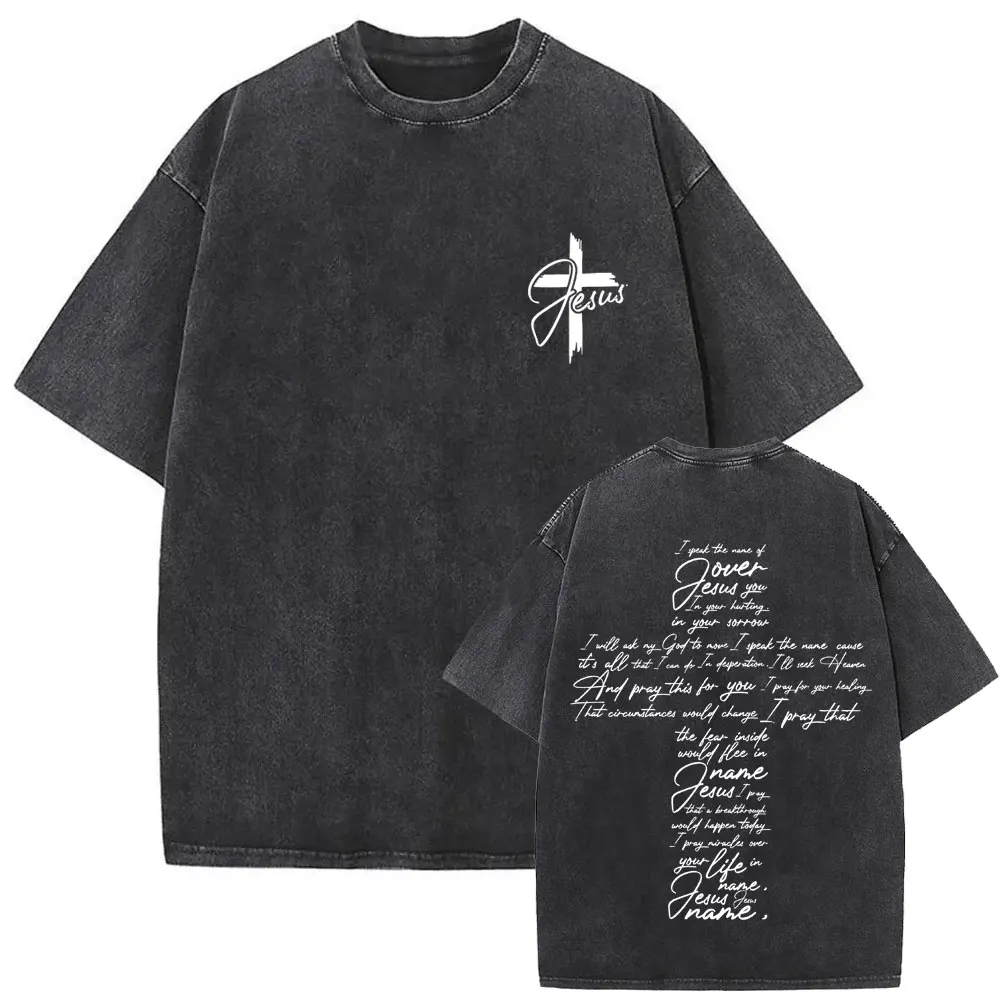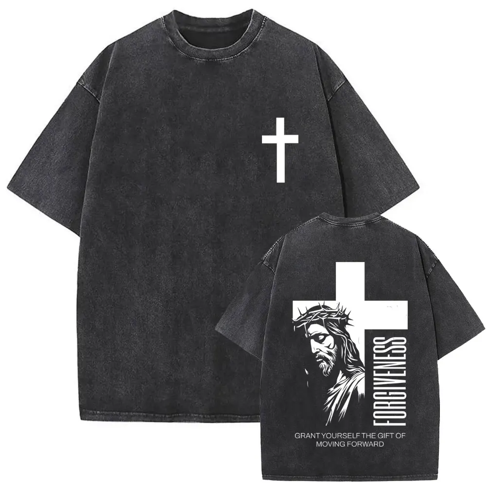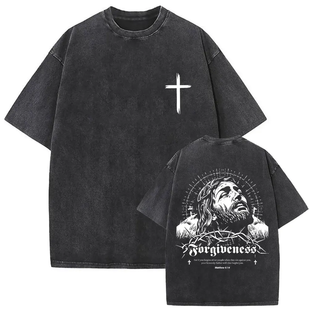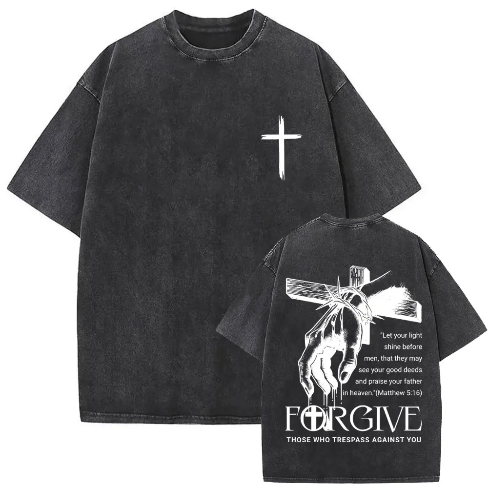 Christian Religious Jesus Forgive Them Father Vintage Washed T-shirt Men Women Gothic Rock Oversized T Shirts Tops Streetwear