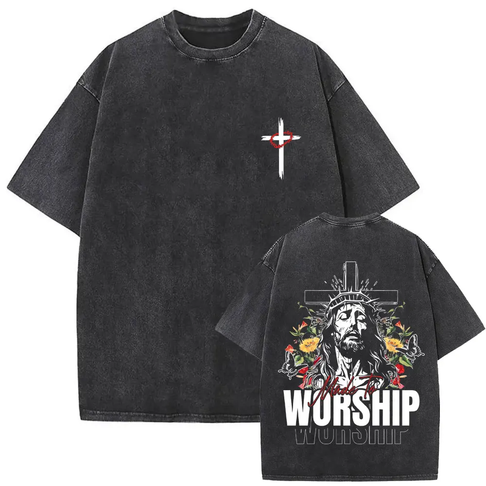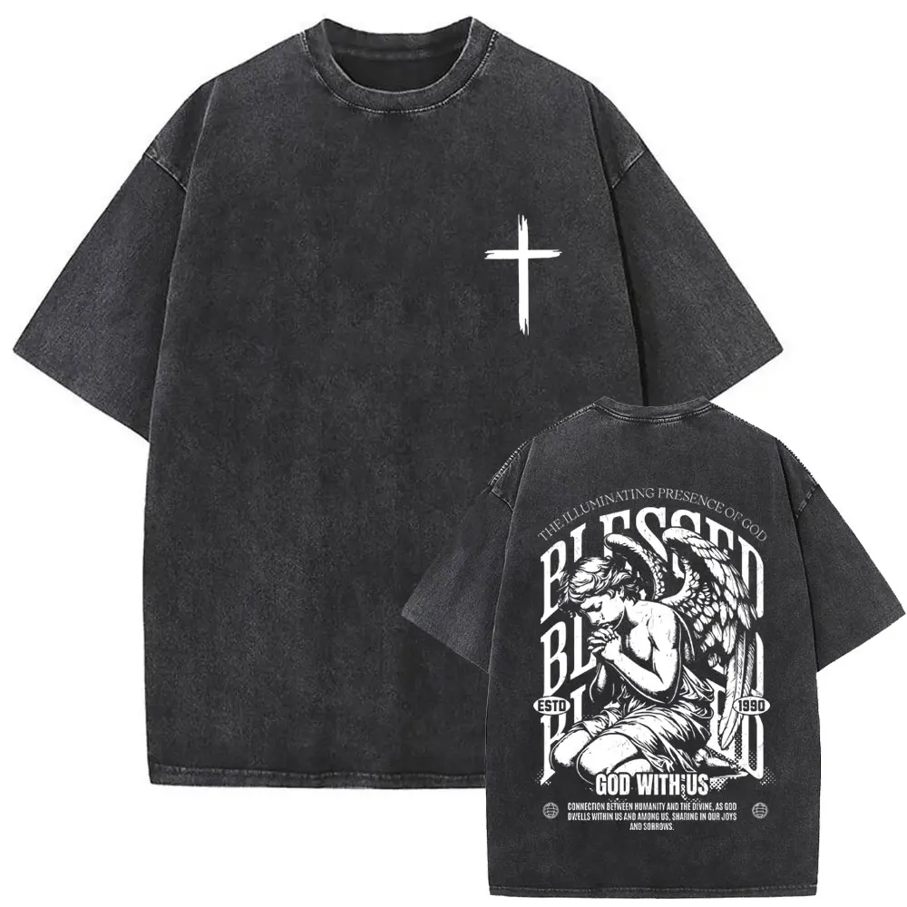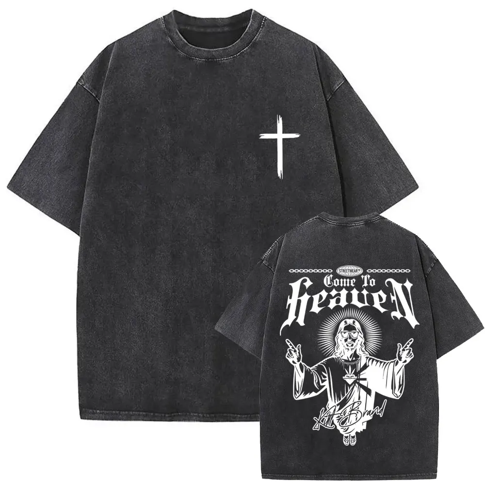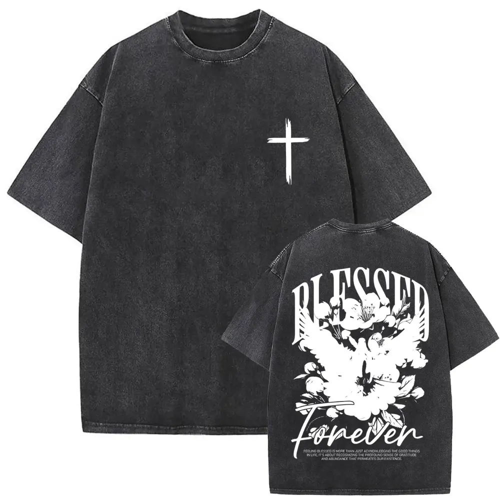 Christian Religious Jesus Forgive Them Father Vintage Washed T-shirt Men Women Gothic Rock Oversized T Shirts Tops Streetwear