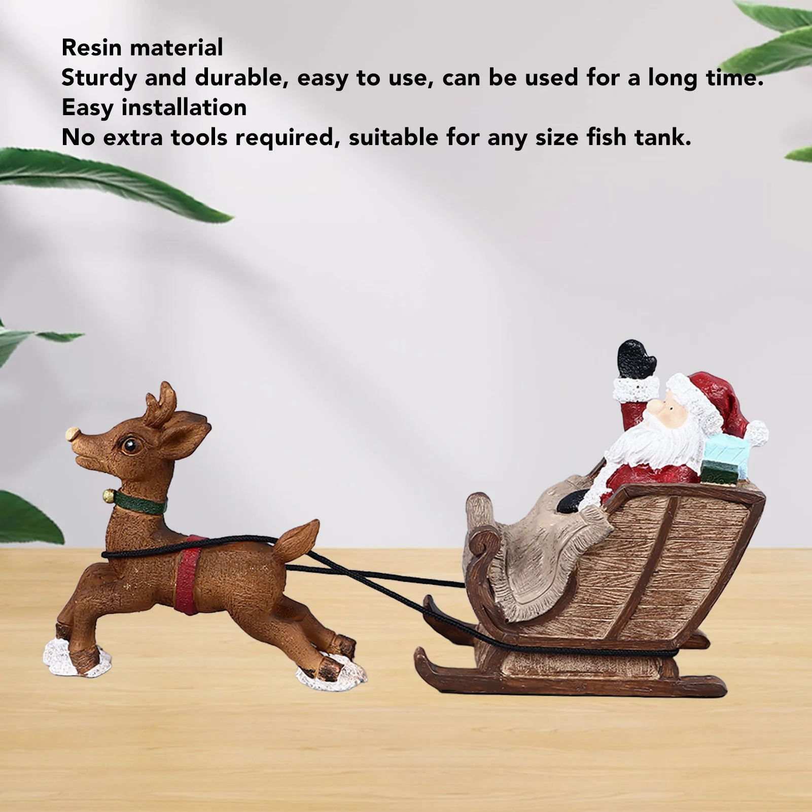 Christmas Aquarium Decoration Resin Father Christmas Reindeer Sleigh Ornament Decorative Fish Tank Ornament