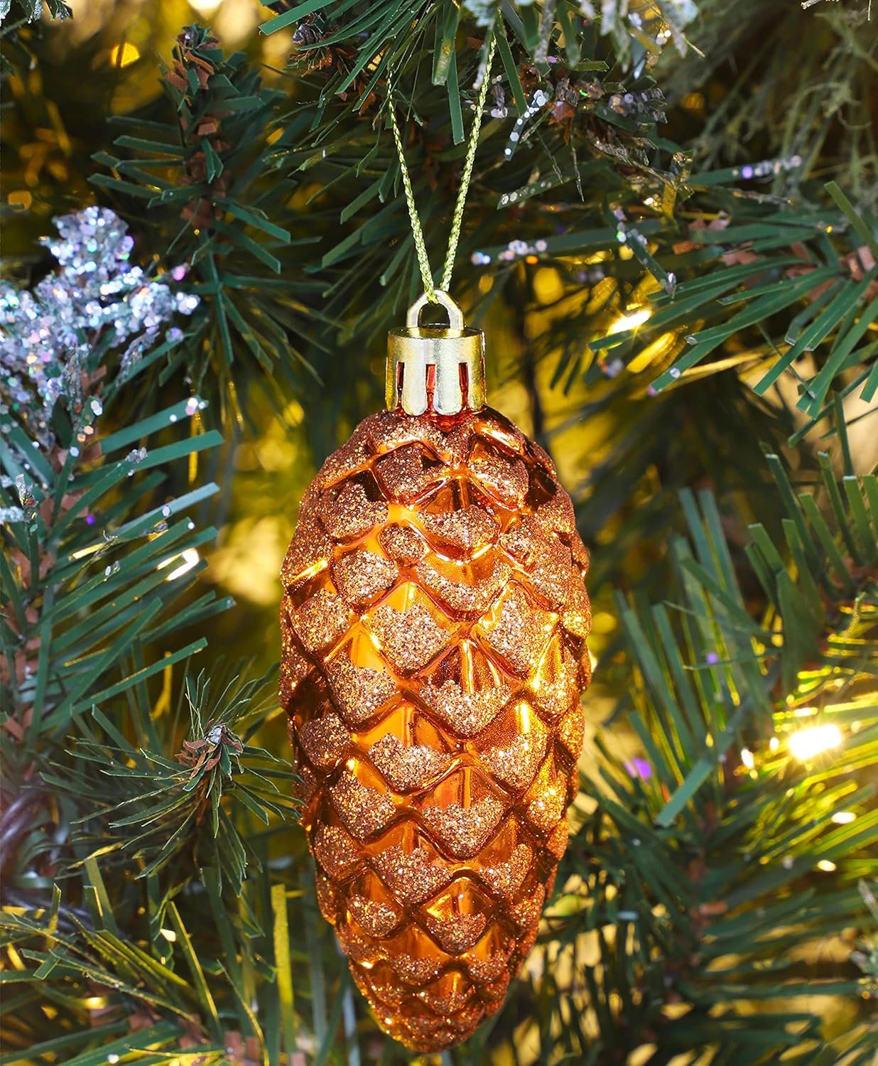 Add the finishes touches to your Christmas display this year with these gorgeous shiny and glitter pine cone baubles.
