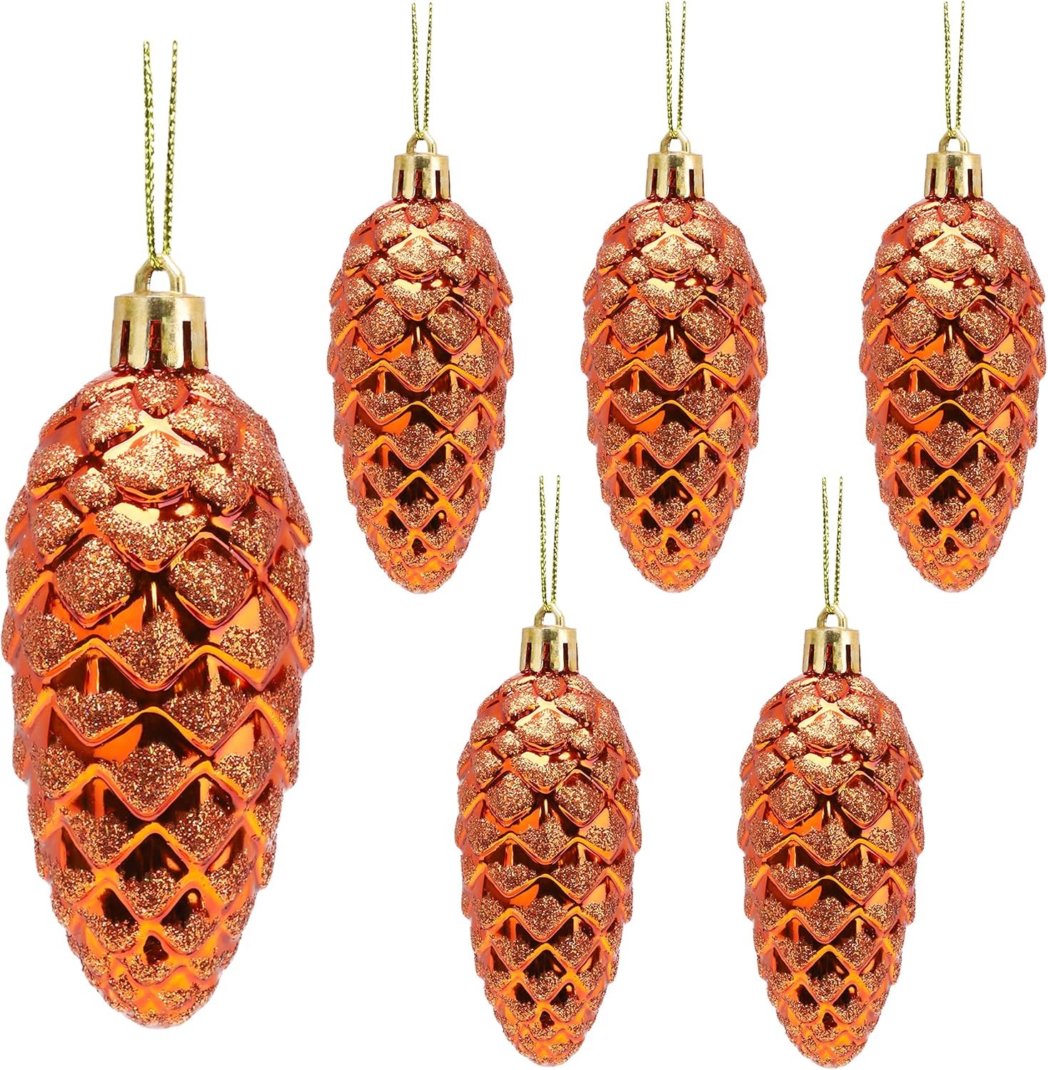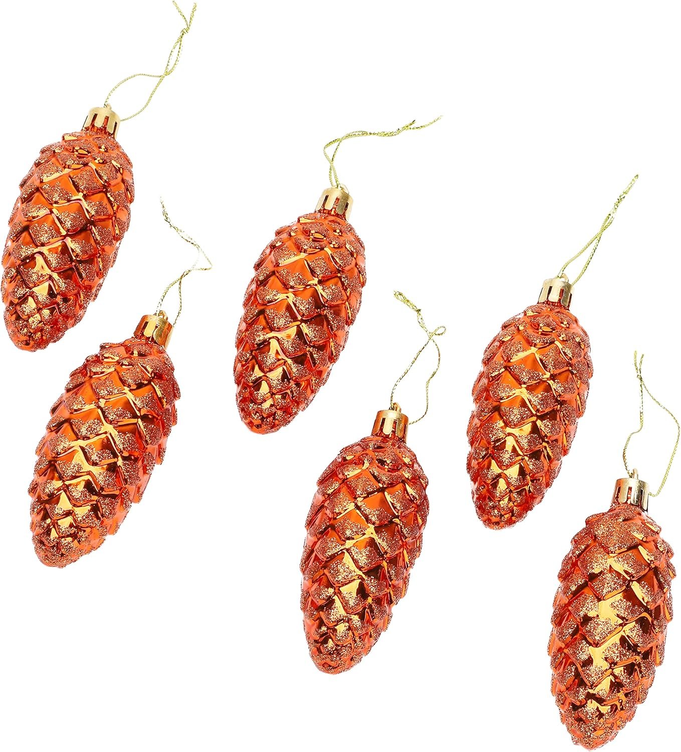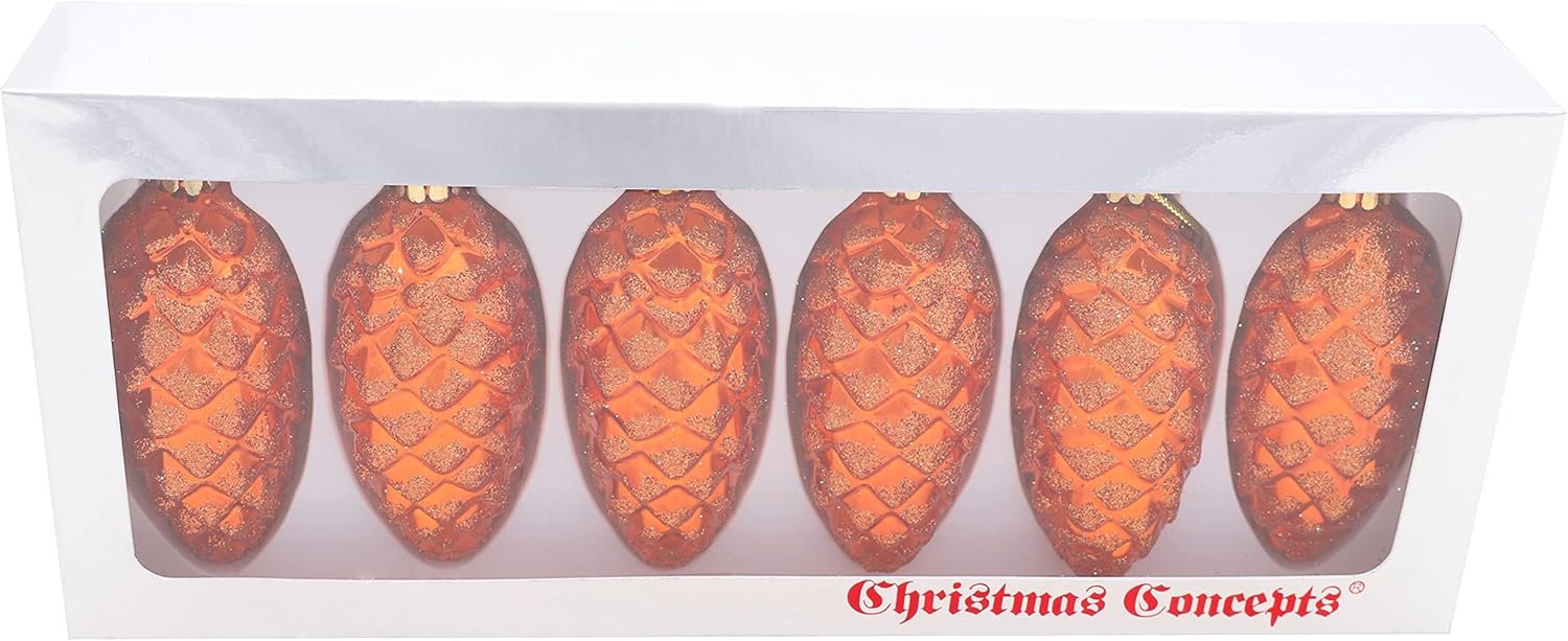 Christmas Concepts® Pack of 6-90mm (3.5″) Pine Cone Baubles – Shiny and Glitter Decorated – Luxury Christmas Ornaments (Copper)