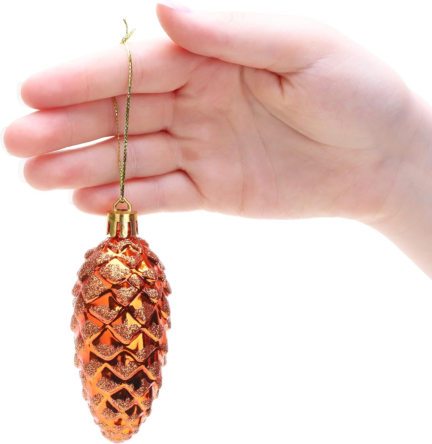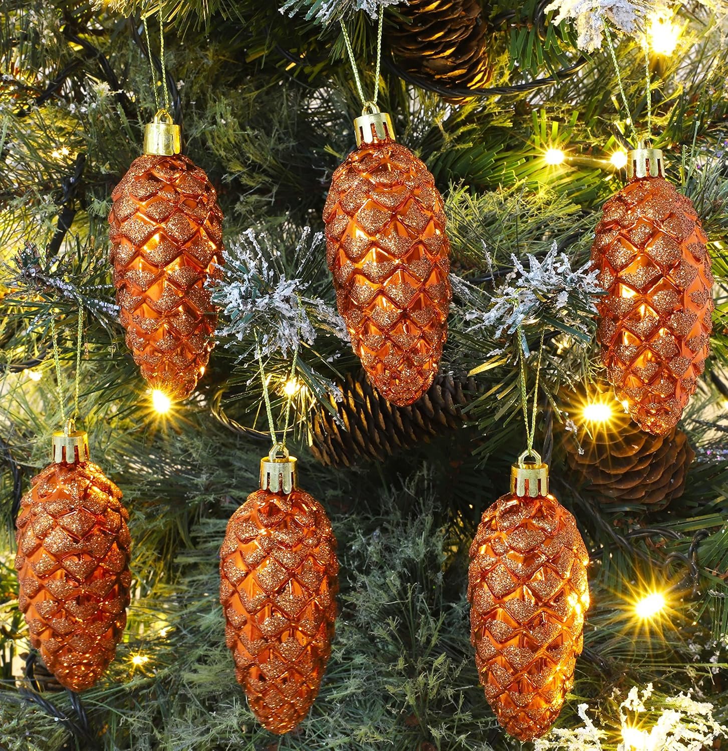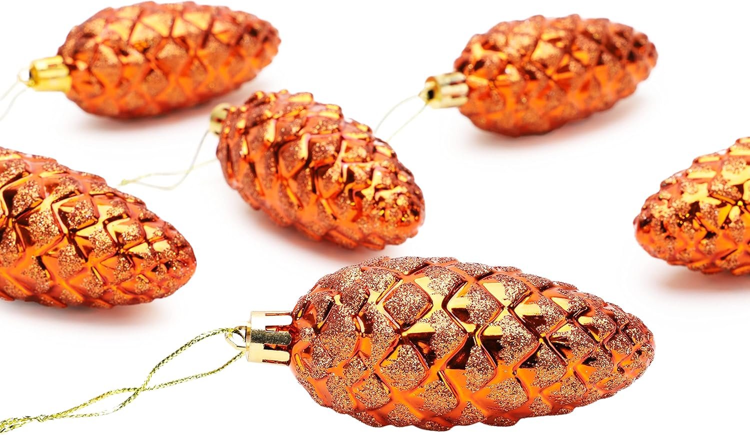 Christmas Concepts® Pack of 6-90mm (3.5″) Pine Cone Baubles – Shiny and Glitter Decorated – Luxury Christmas Ornaments (Copper)