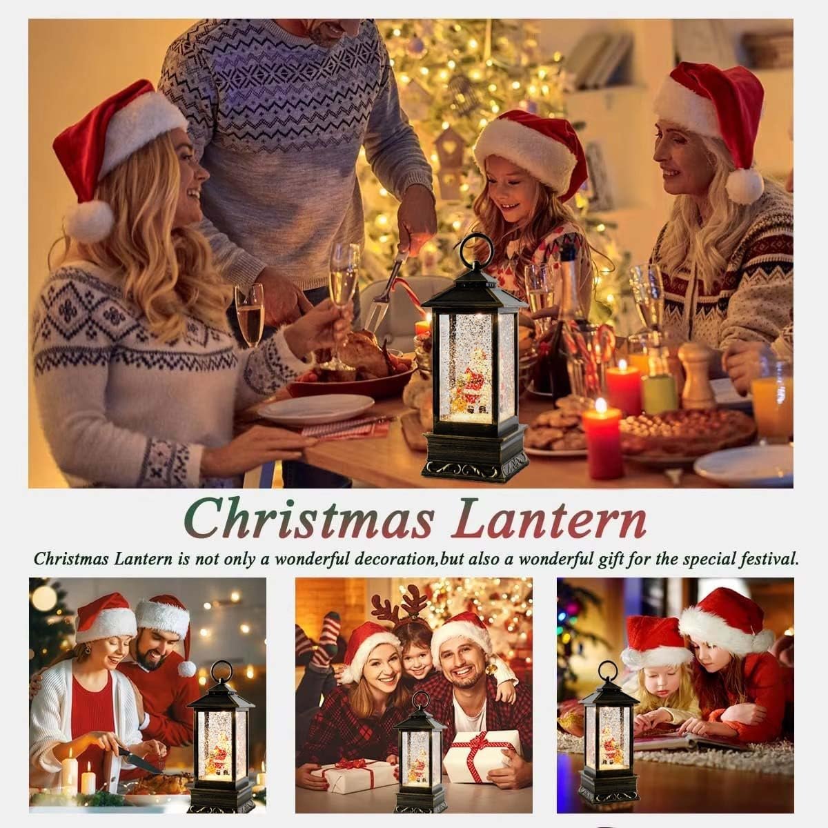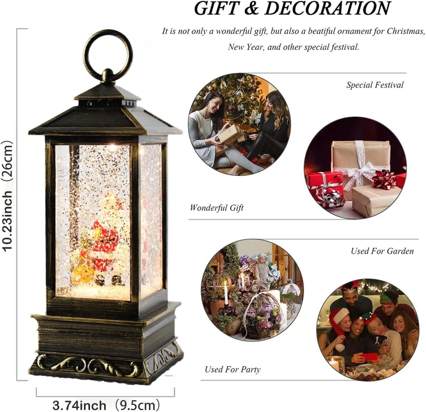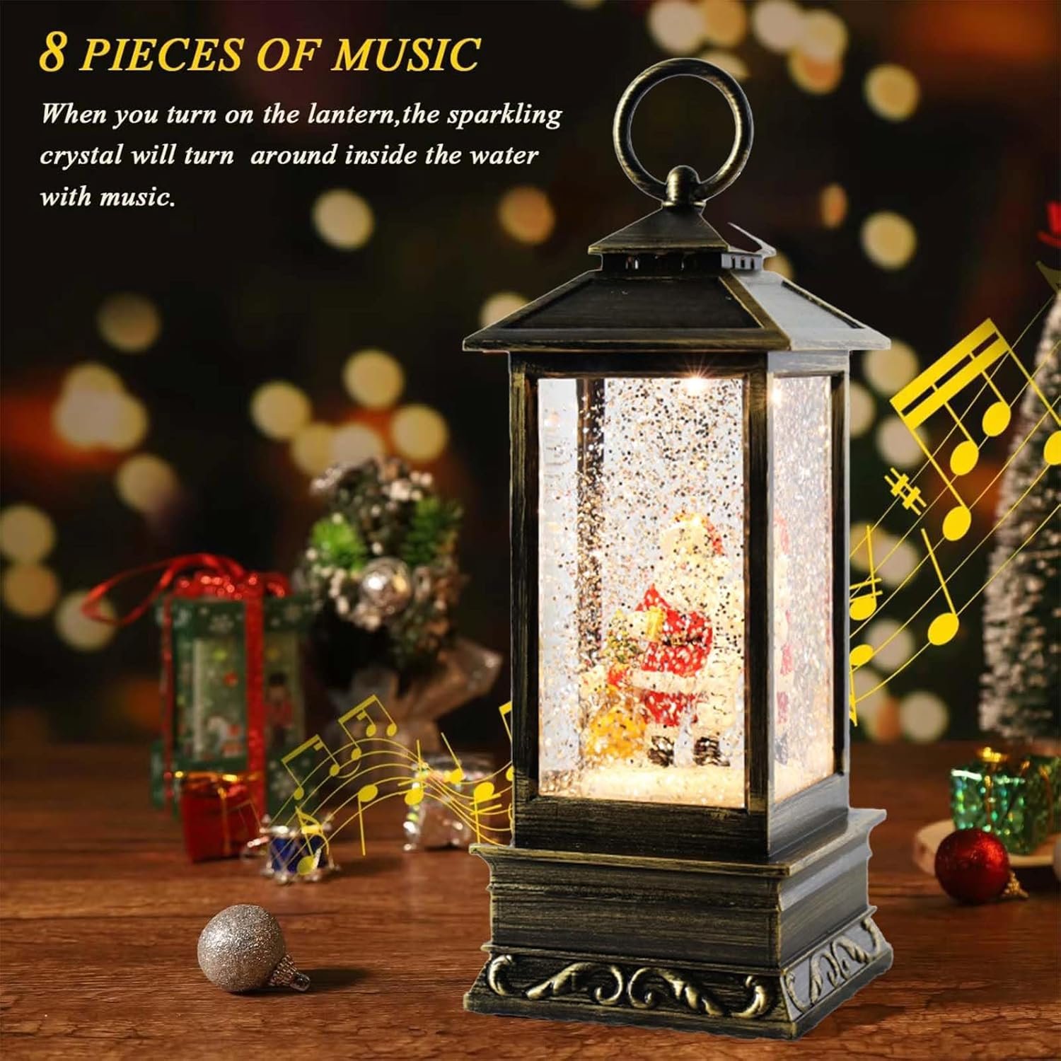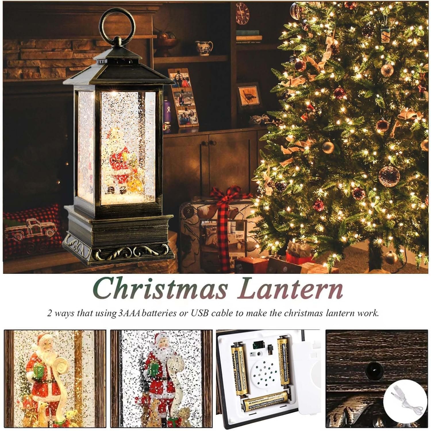 Christmas Snow Globes Lantern,USB/Battery Operated Singing Water Glittering Lantern,11inch Snow Globe Christmas Lights (Santa Claus), Large, Brown