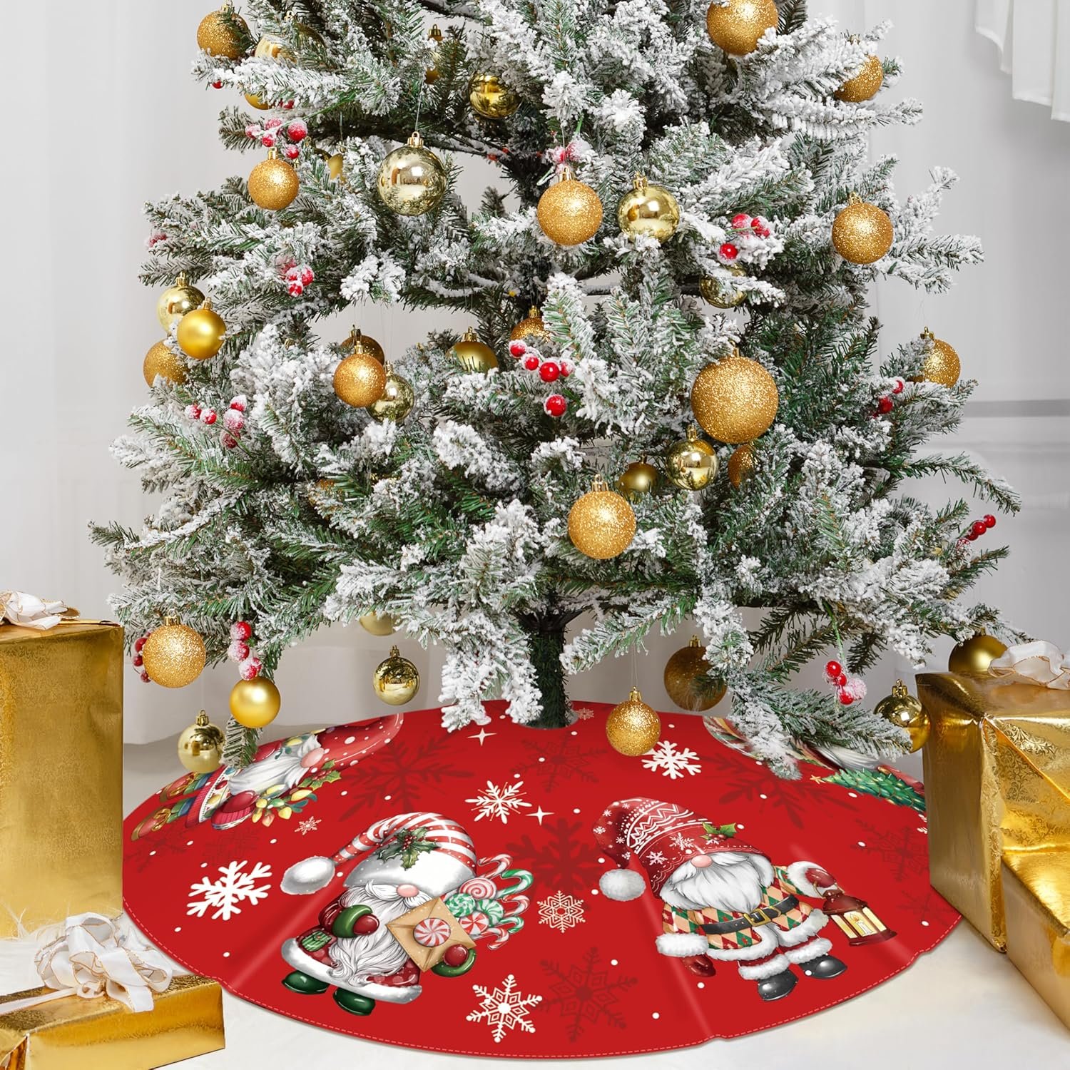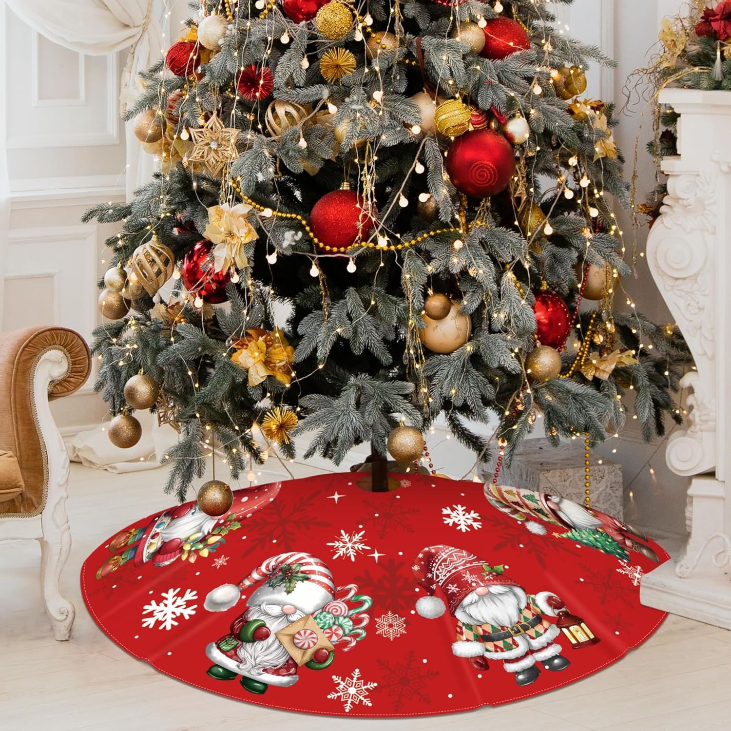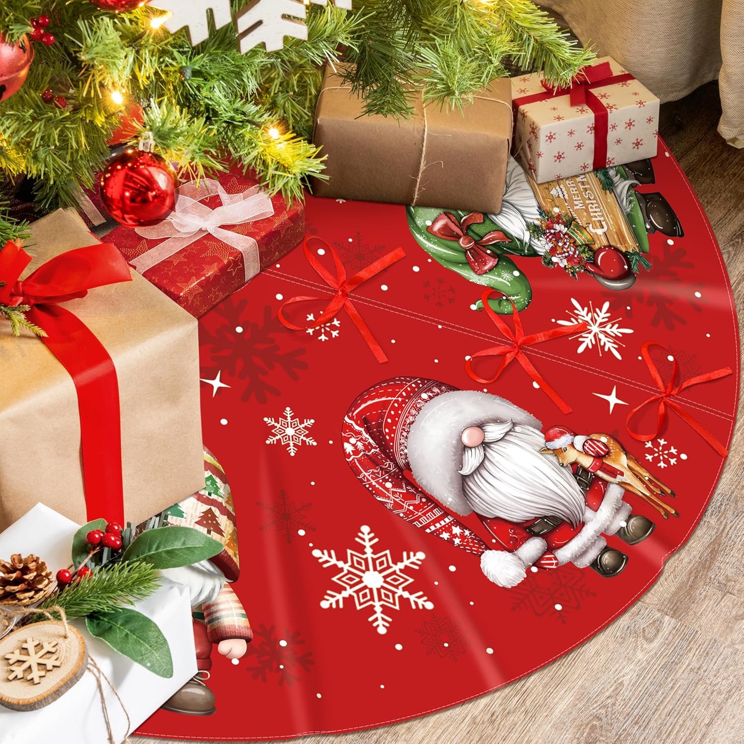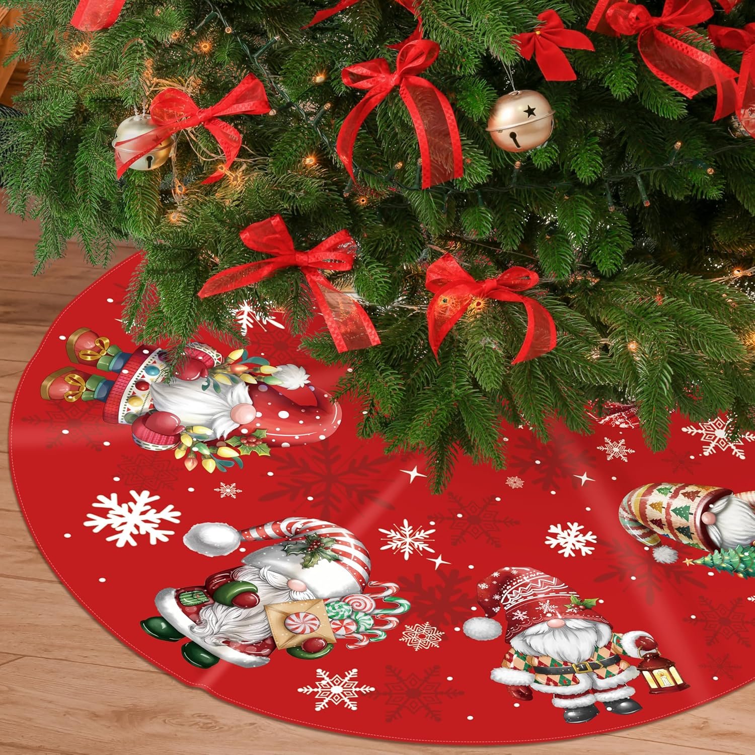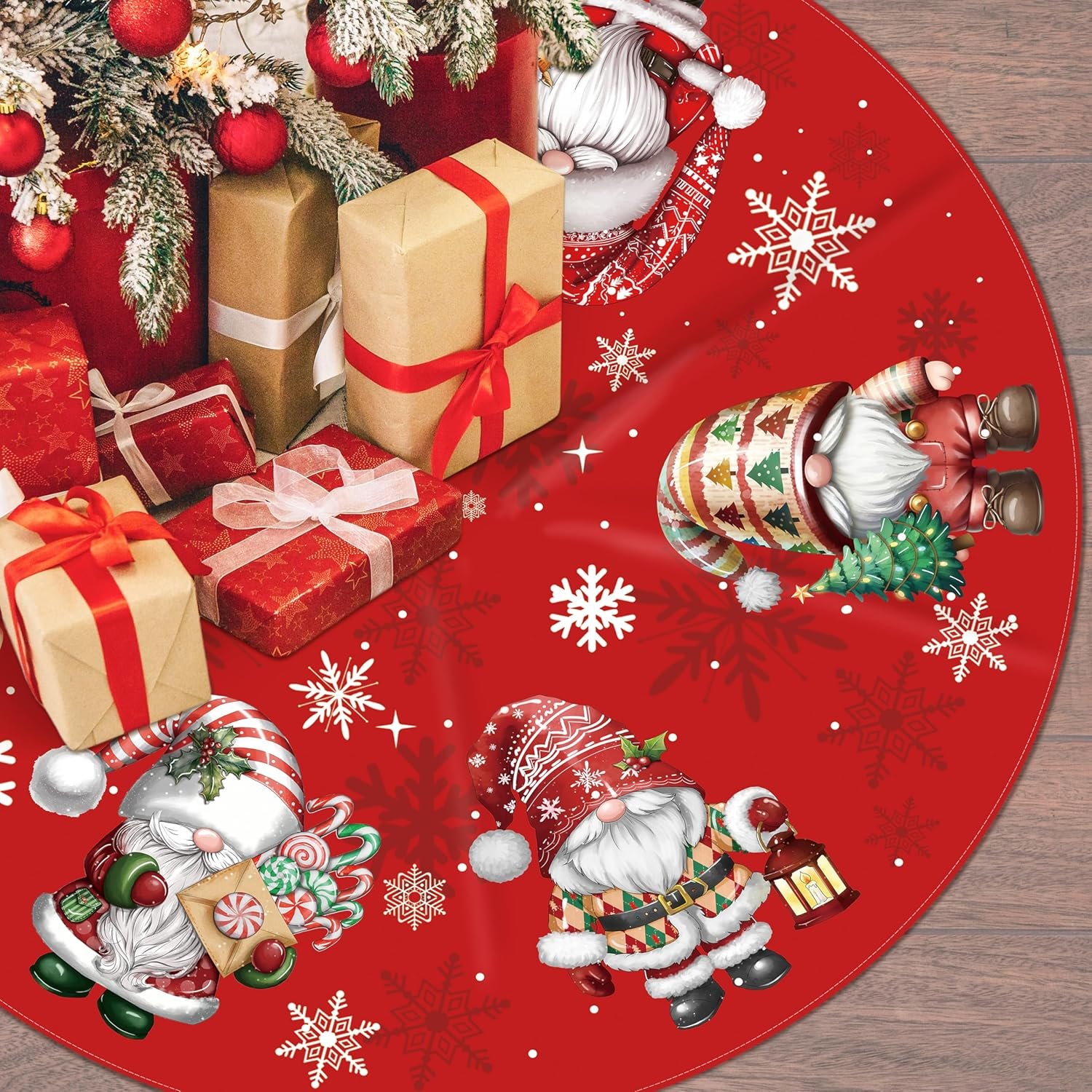 Christmas Tree Skirt : You will get 48 inch gnome Christmas tree skirt, gnome tree skirt fits any size of Christmas tree. Designed with stylish colors and patterns to match any Christmas tree decoration, add more Christmas atmosphere.
