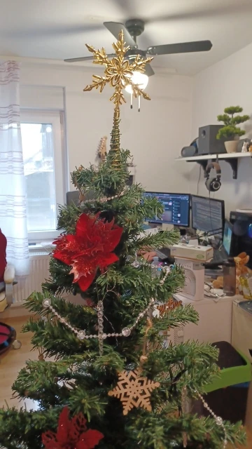 4 reviews for Christmas Tree Topper Glitter Gold Star Hollow Out 3D Snowflake Xmas Tree Pendant Home New Year Decoration Party Gift Supplies
