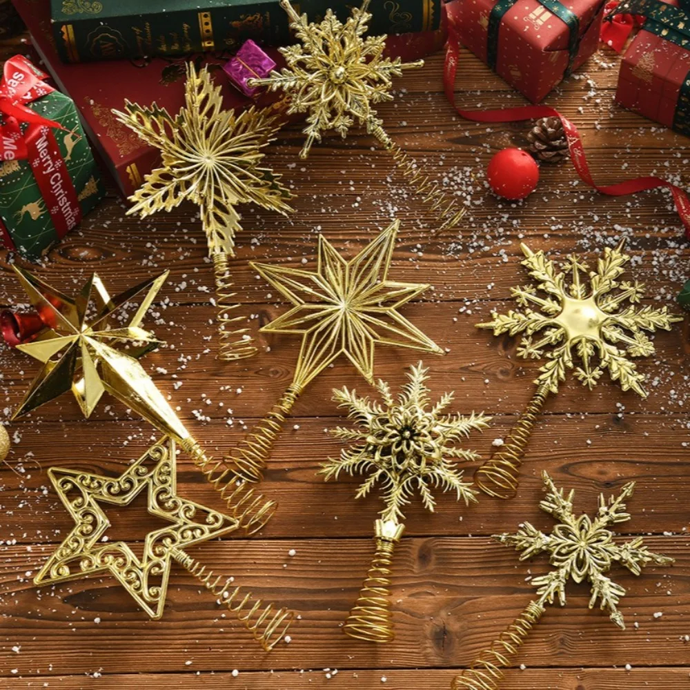 Christmas Tree Topper Glitter Gold Star Hollow Out 3D Snowflake Xmas Tree Pendant Home New Year Decoration Party Gift Supplies