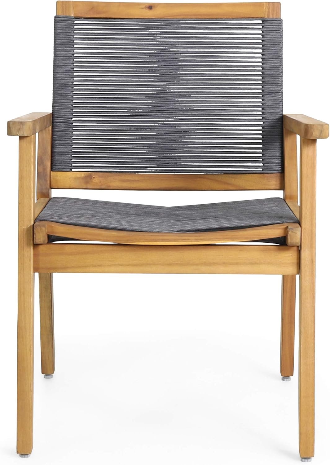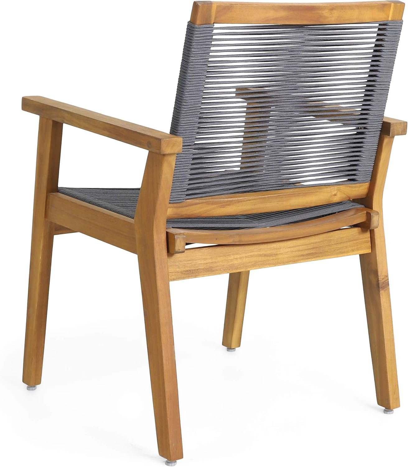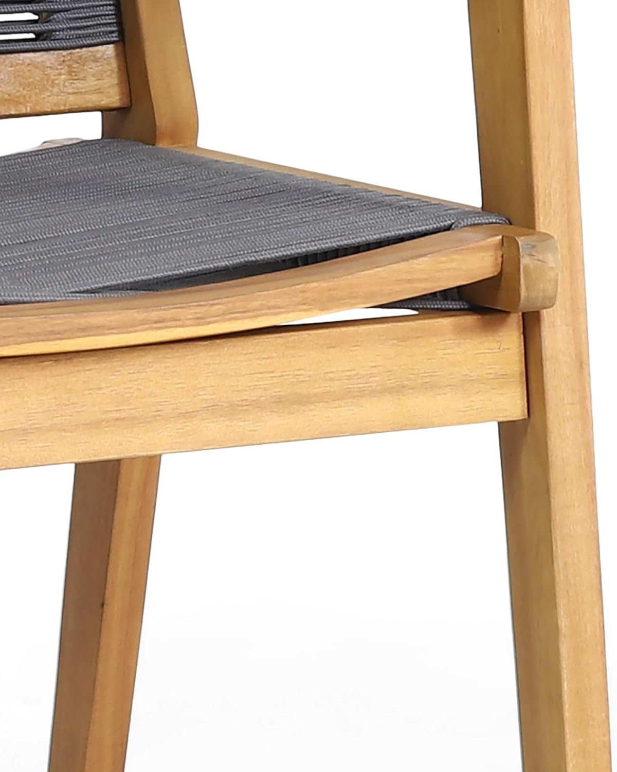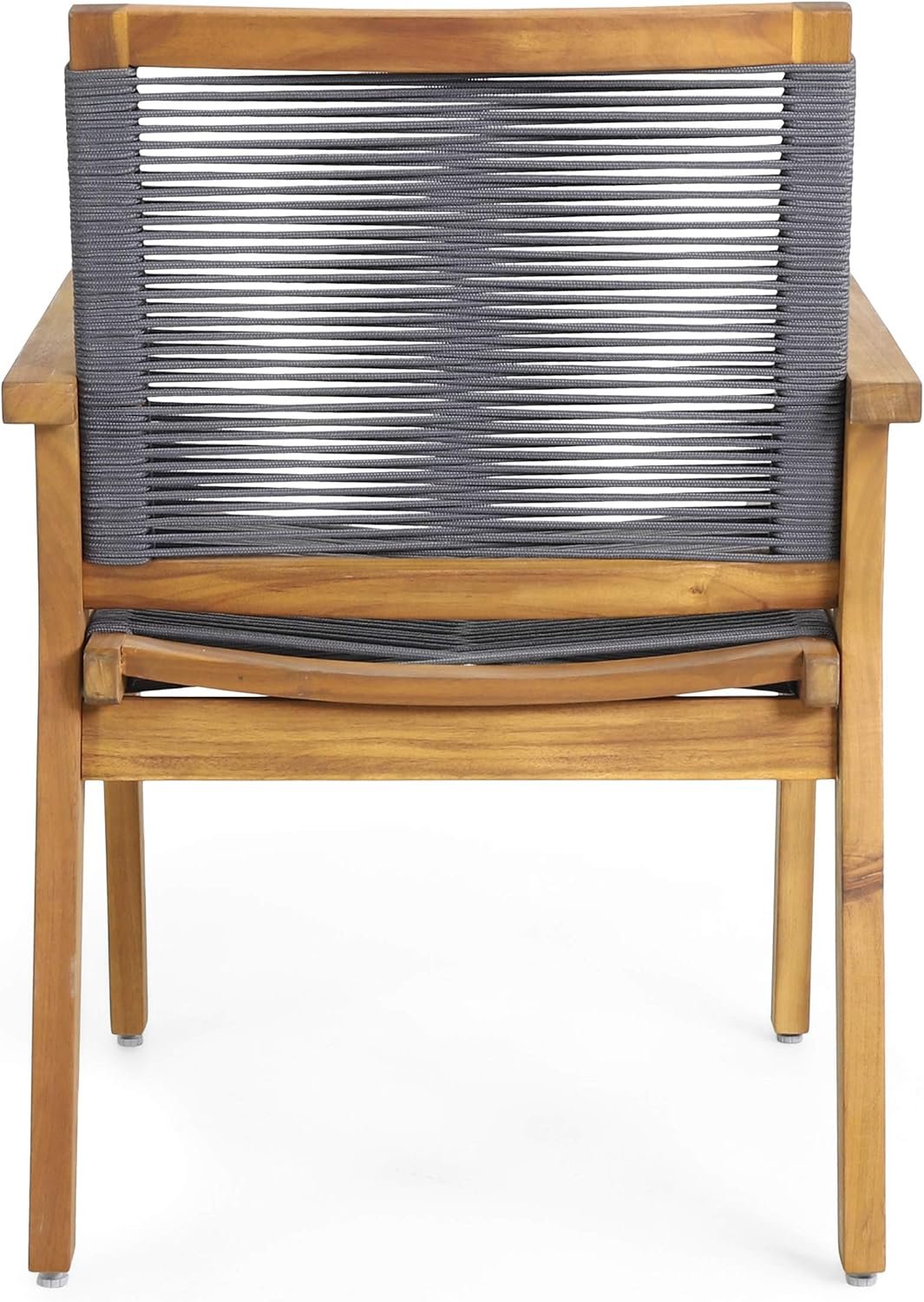 Christopher Knight Home Tracy Outdoor Acacia Wood Dining Chair with Rope Seating (Set of 2), Teak and Dark Gray