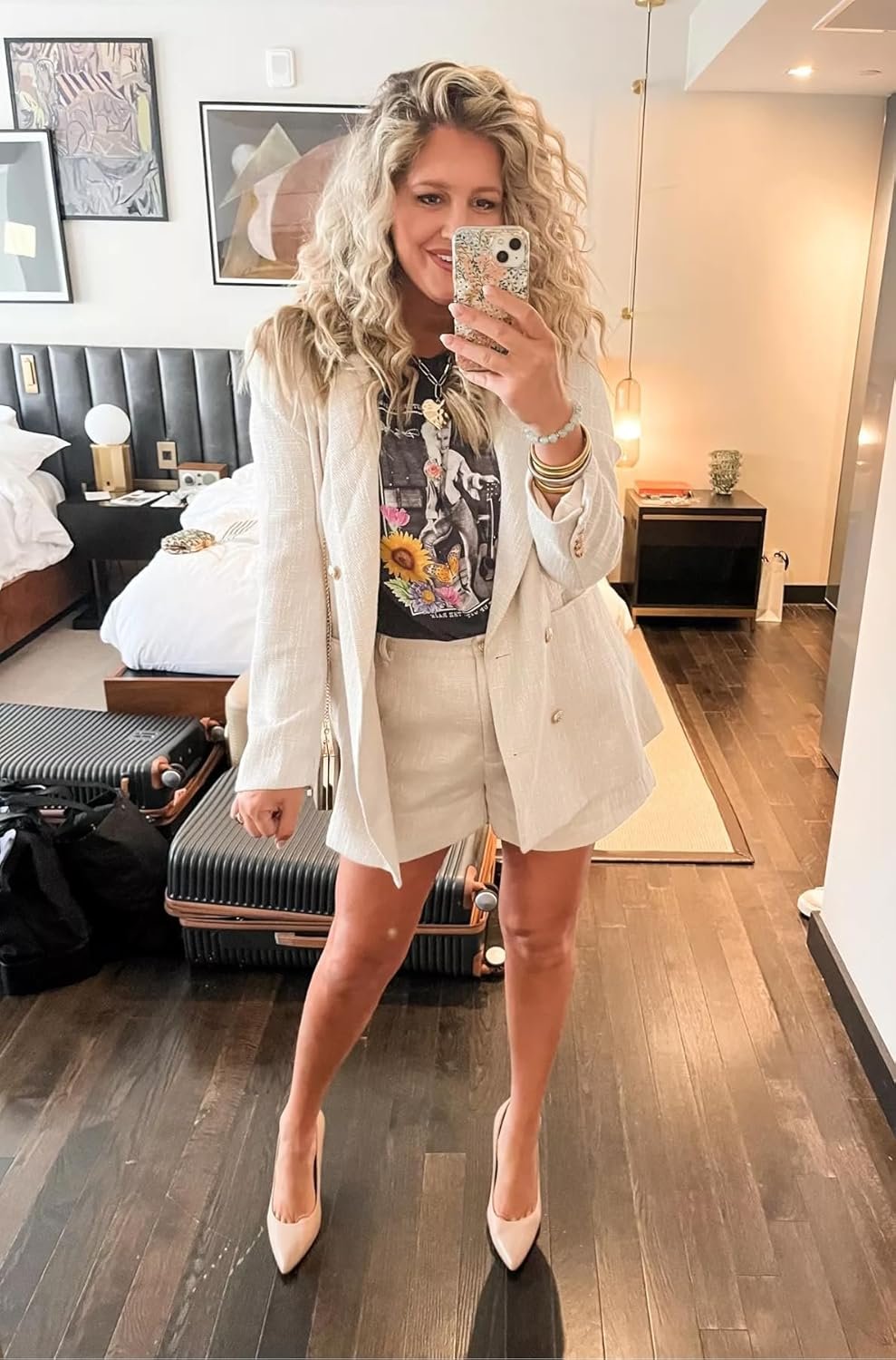 The Cicy Bell Women’s 2 Piece Tweed Blazer Shorts Sets can be easily styled for different occasions
