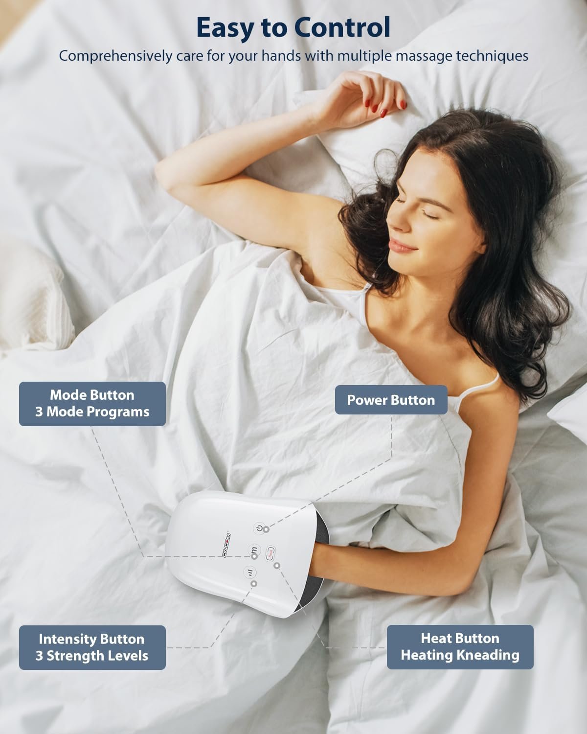 Give Your Hands A Break: This electric hand massager relieves arthritis or carpal tunnel pain and relaxes your hand after a long day of work. Heat, air pressure, and kneading to help to get rid of finger numbness & joint soreness. Suitable for both left and right hands