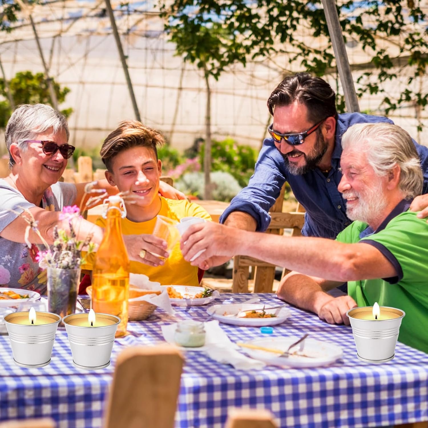 12 Pack Citronella Candles: The small metal bucket is beautifully designed, light weight and easy to carry with you. Whether you’re having a BBQ, patio or backyard gatherings, outdoor picnic, camping, pool deck, or any other activity. Our citronella outdoor candles are the ideal companion, making it possible to enjoy your time outdoors.