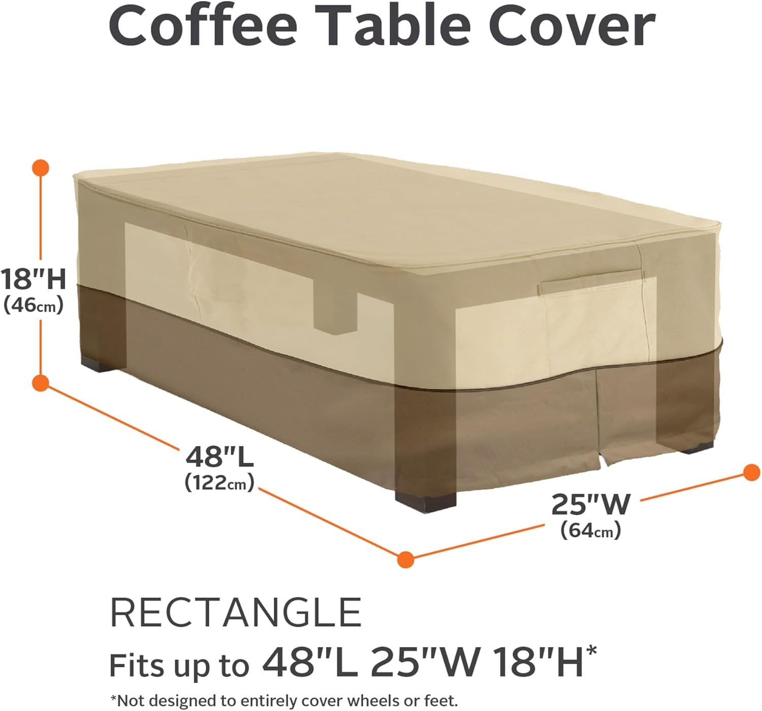 HEAVY DUTY PATIO FURNITURE COVER: Fits rectangular coffee tables 48″L x 25″W x 18″H