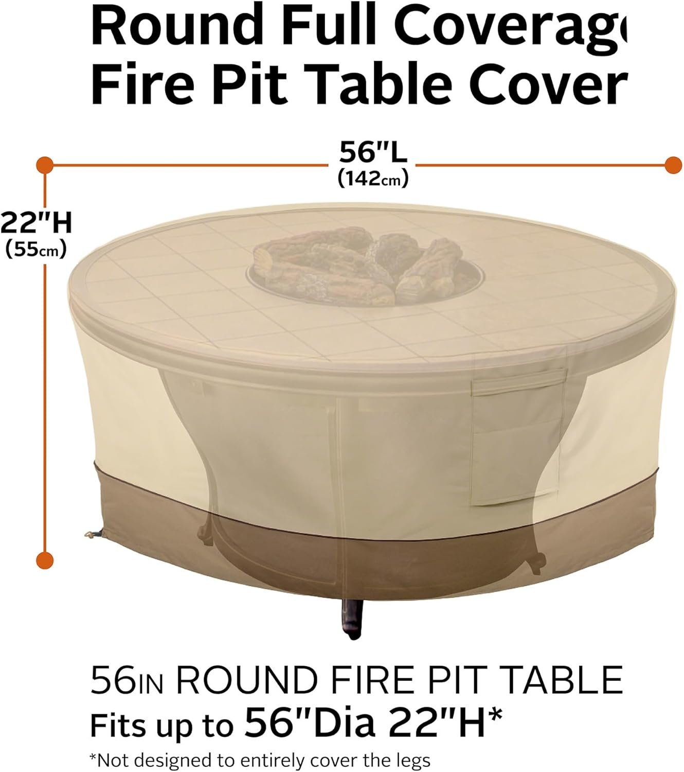 HEAVY DUTY PATIO FURNITURE COVER: Fits 56″ round fire pit tables 56″DIA x 22″H