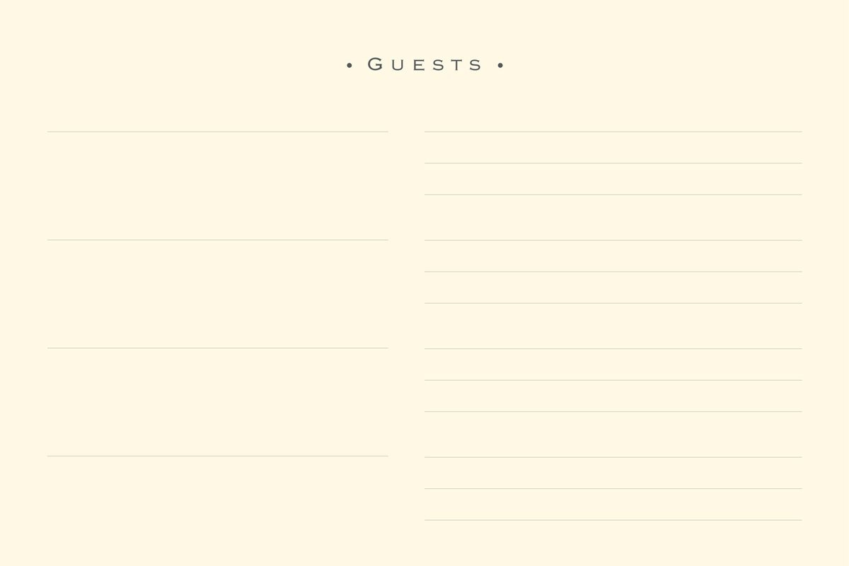 Mid-weight ivory-hued paper is luxuriously smooth. Light gray lines subtly guide your guests’ writing.
