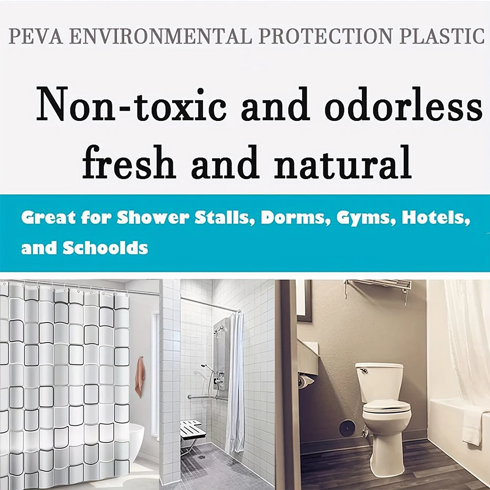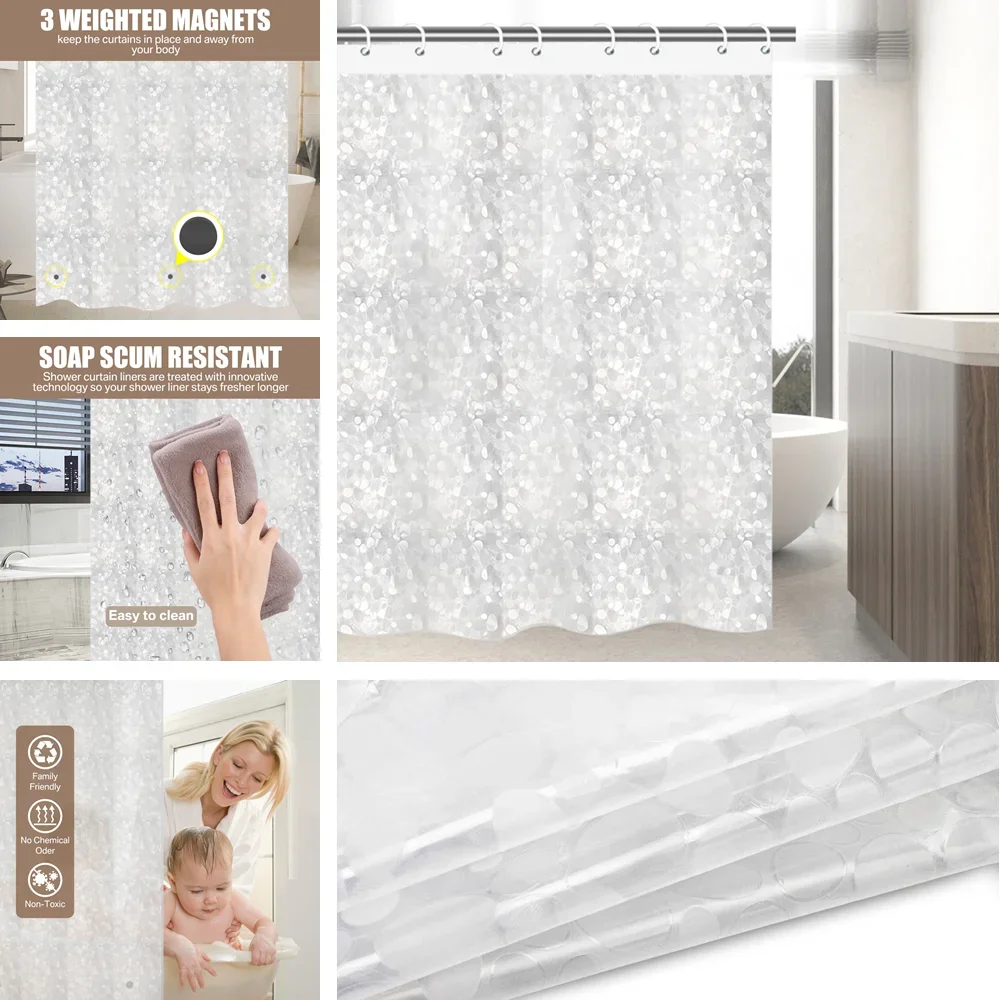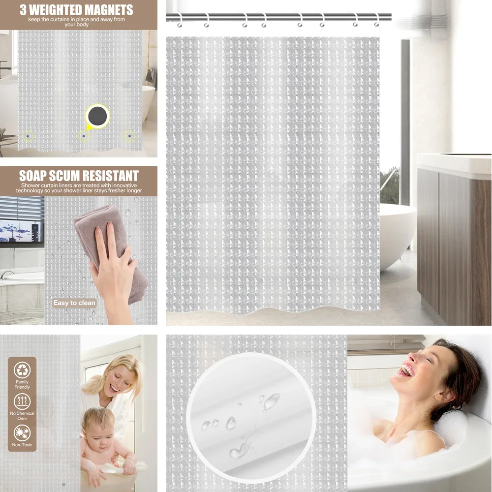 Clear Shower Curtain Plastic Shower Liner PEVA 180x200CM Lightweight Waterproof Shower Curtains for Bathroom with Magnets&Hooks