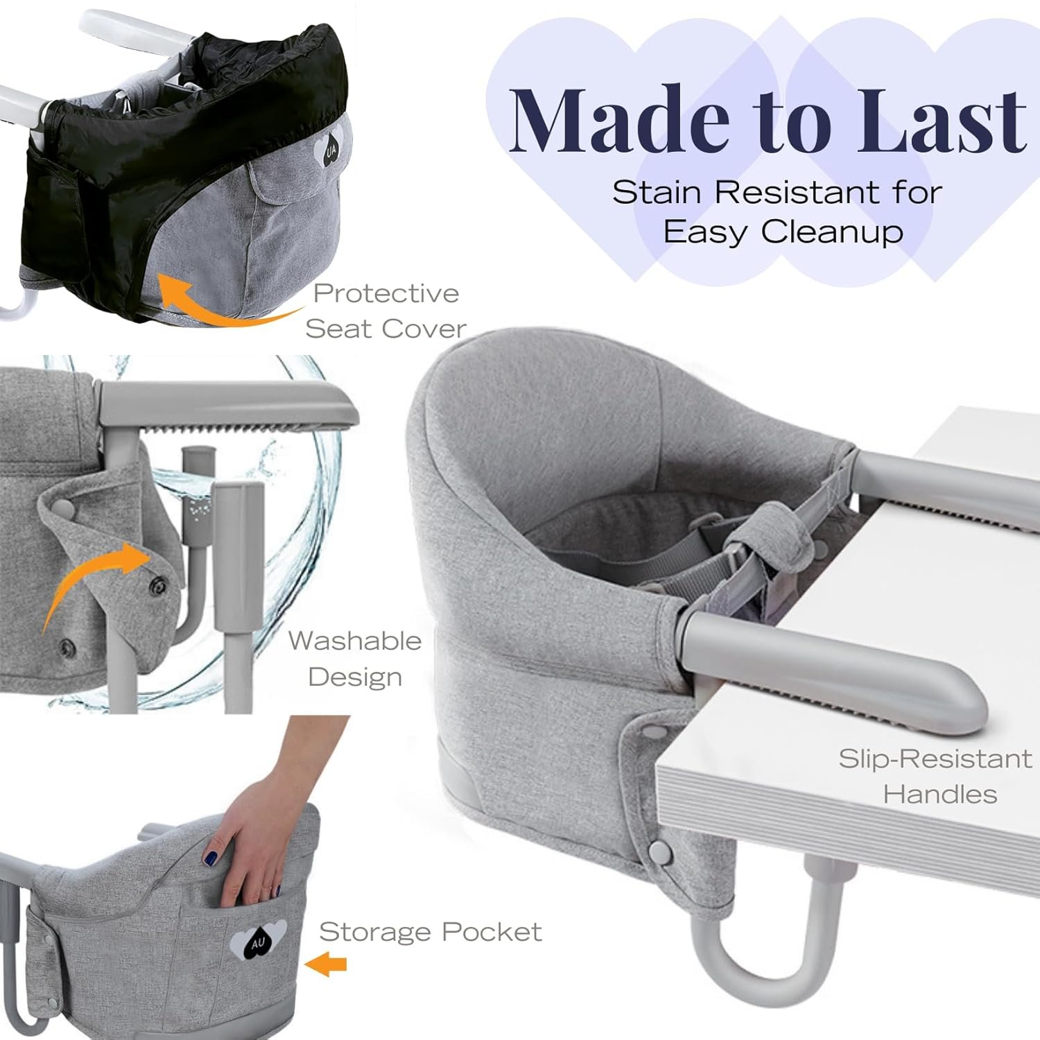 Clip-On High Chair for Table – Portable Baby & Toddler Travel Seat with Fast-Lock System, Machine Washable, Fits Tables up to 3.25″, Lightweight & Secure