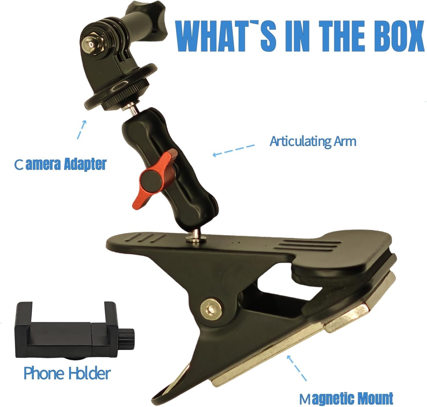 Clip Phone Holder,Magnetic Phone Holder,Clamp Phone Stand Holder for Desk/Table/Glass/Baffle/Easel/Guitar Head Compatible for iPhone, Gopro, DJI Action, Insta 360