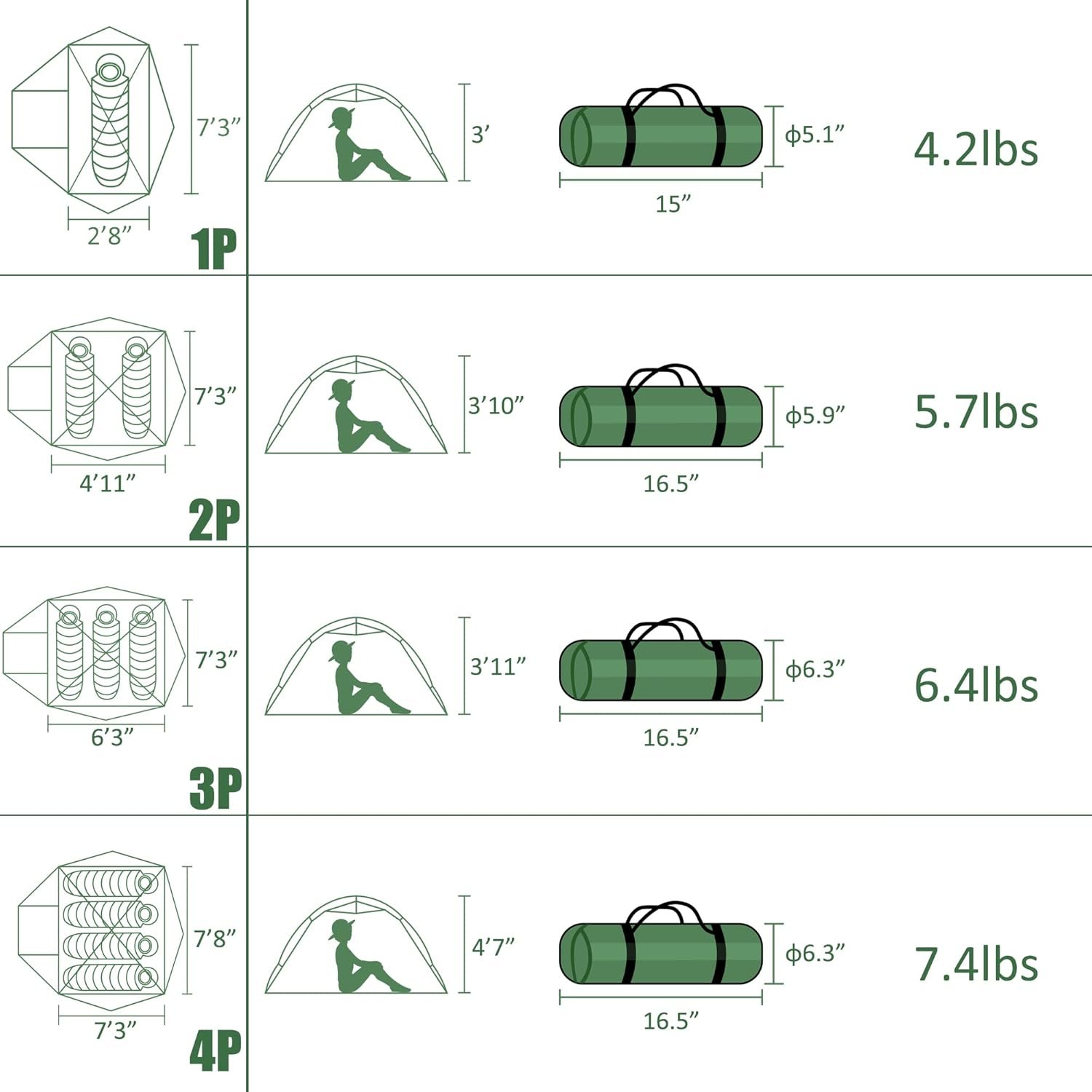 LARGE SIZE & LIGHTWEIGHT: Ultralight 2 person tent! Tent’s size 7’3”x 4’11”x 3’10”. Weight: 5.7lbs. Packed Size: 16.5”x5.9”x5.9”, easy to put in one’s backpack. It is larger and could even fit a little dog. Great for kids or children as a boy scout tent