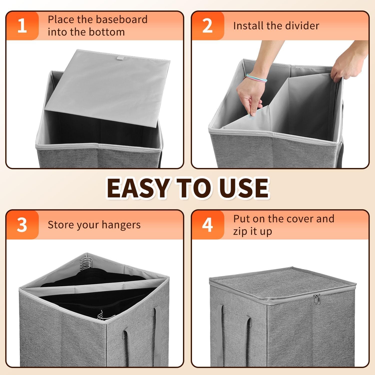 Dust-Proof Hard Protective Cover – Hanger organizer is equipped with a dust-proof protective cover, which can effectively prevent dust, cat hair, stains and keep your clothes clean and tidy. In addition, the sturdy dust-proof storage box is also suitable for storing clothes, towels, toys, blankets and other household items. It is a very suitable storage expert for home use
