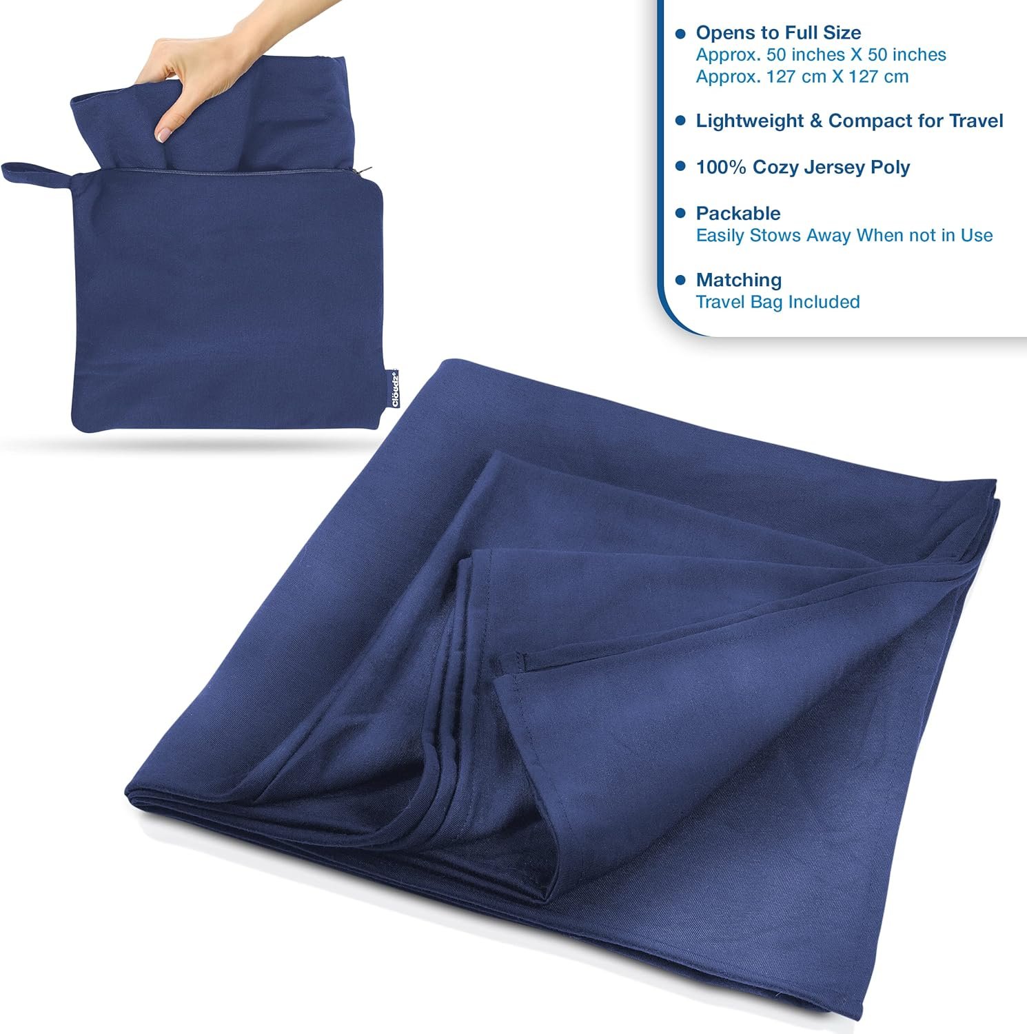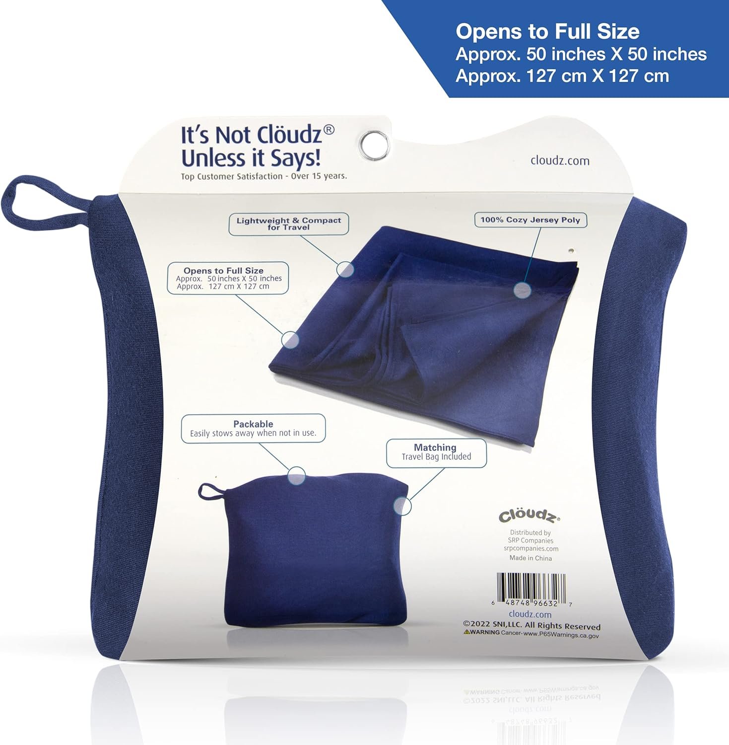 Cloudz Super Soft Jersey Airplane Travel Blanket for Your Flight, Car, Camping, Home or Comforting Warmth Anywhere! Large in Size at 50″x 50″ and Includes a Bag! – Blue
