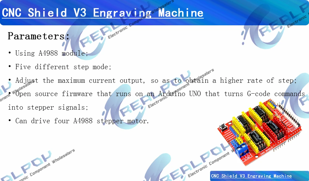 14 reviews for CNC Shield V3 Engraving Machine 3D Printer + 4pcs DRV8825 Or A4988 Driver Expansion Board For Arduino + UNO R3 With USB Cable