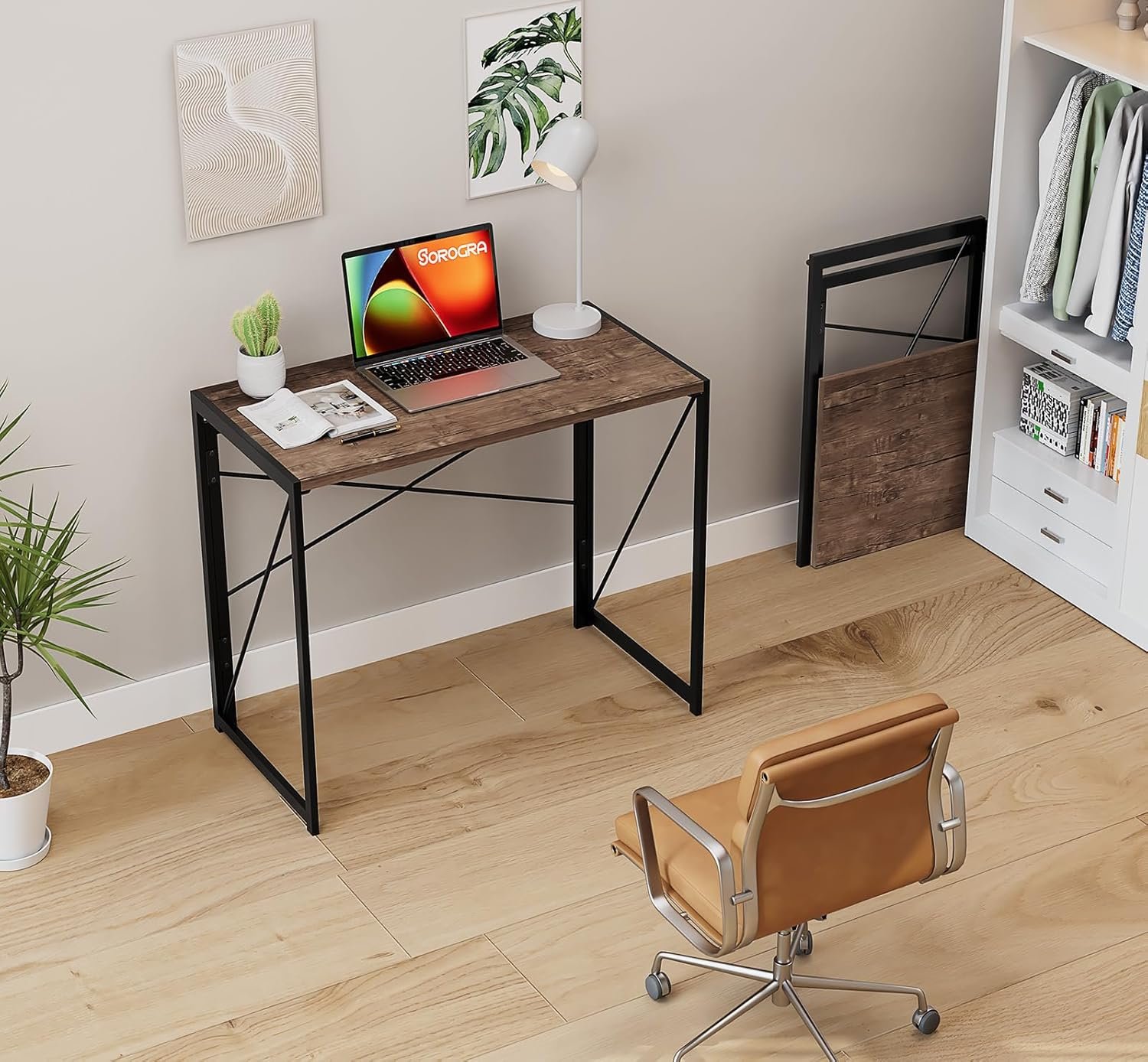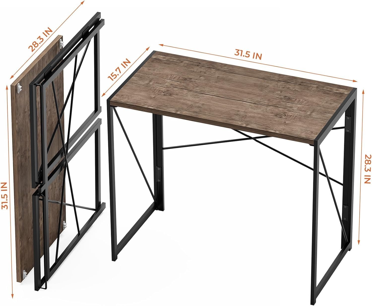 Coavas Folding Desk 31.5 inch Foldable Small Portable Computer Desks, Spaces Saving Writing Sturdy Table for Bedroom, Home Office, Dorm, Apartment, Pre Assembled, Brown