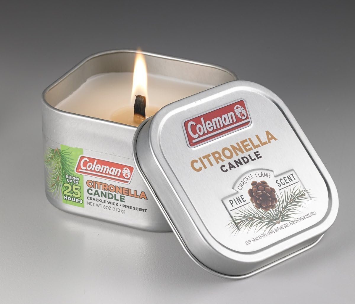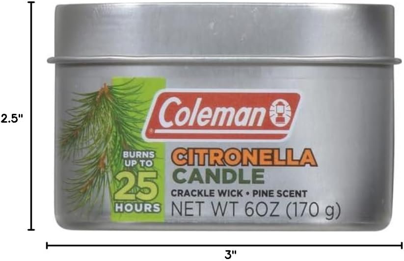Coleman Pine Scented Citronella Candle with Wooden Crackle Wick – 6 oz Tin