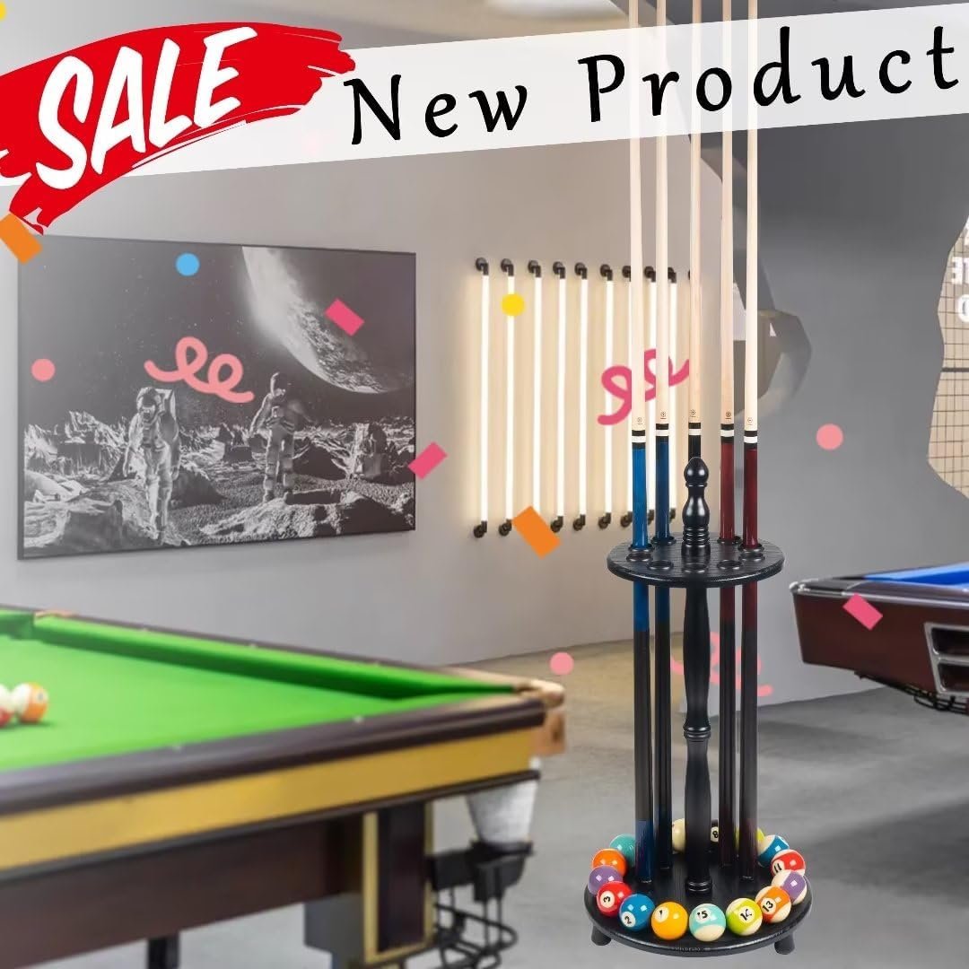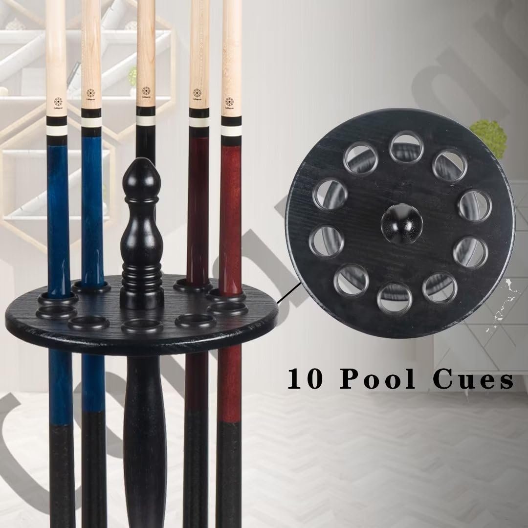 SAVE YOUR GAME ROOM SPACE:This pool cue holder floor stand is perfectly proportioned to fit in the floor of your gameroom,It Holds up to 10 cues and a full set of balls ,Maximize your game room space with this cue rack.