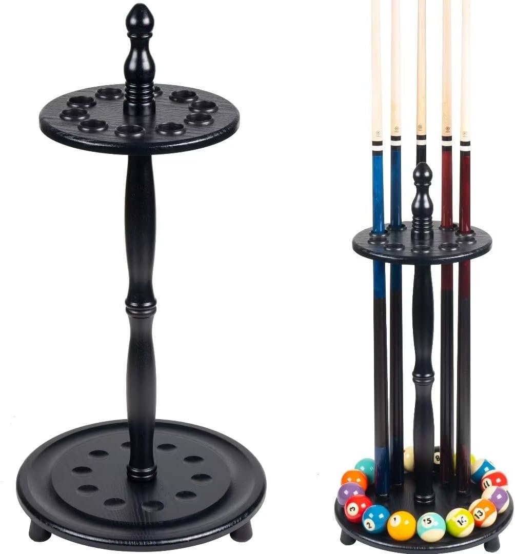 Collapsar Pool Stick Holder Floor Stand,Billiard Cue Rack Holds 10 Cues and a Full Set of Balls,Solid Wood Pool Cue Rack
