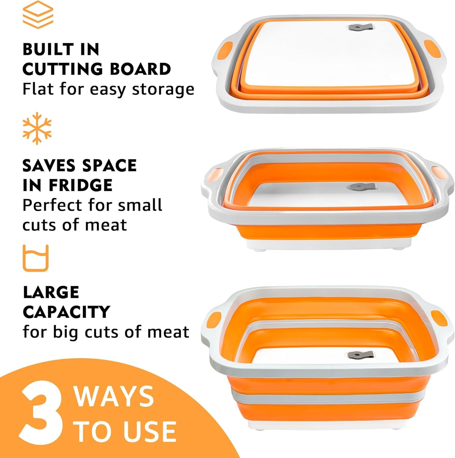 ✅Versatile 3-in-1 Design: Functions as a BBQ prep station, cutting board, and washing basket, ideal for multiple food preparation tasks