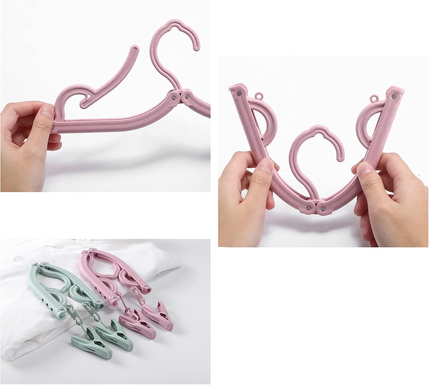 Anti-slip design: 8 Pcs Folding Clothes Hangers are made of high-quality plastic, with good load-bearing capacity.Four different colors, adding fashionable colors to your wardrobe. The anti-skid design on the tail can firmly fix the clothes and prevent the clothes from sliding down.