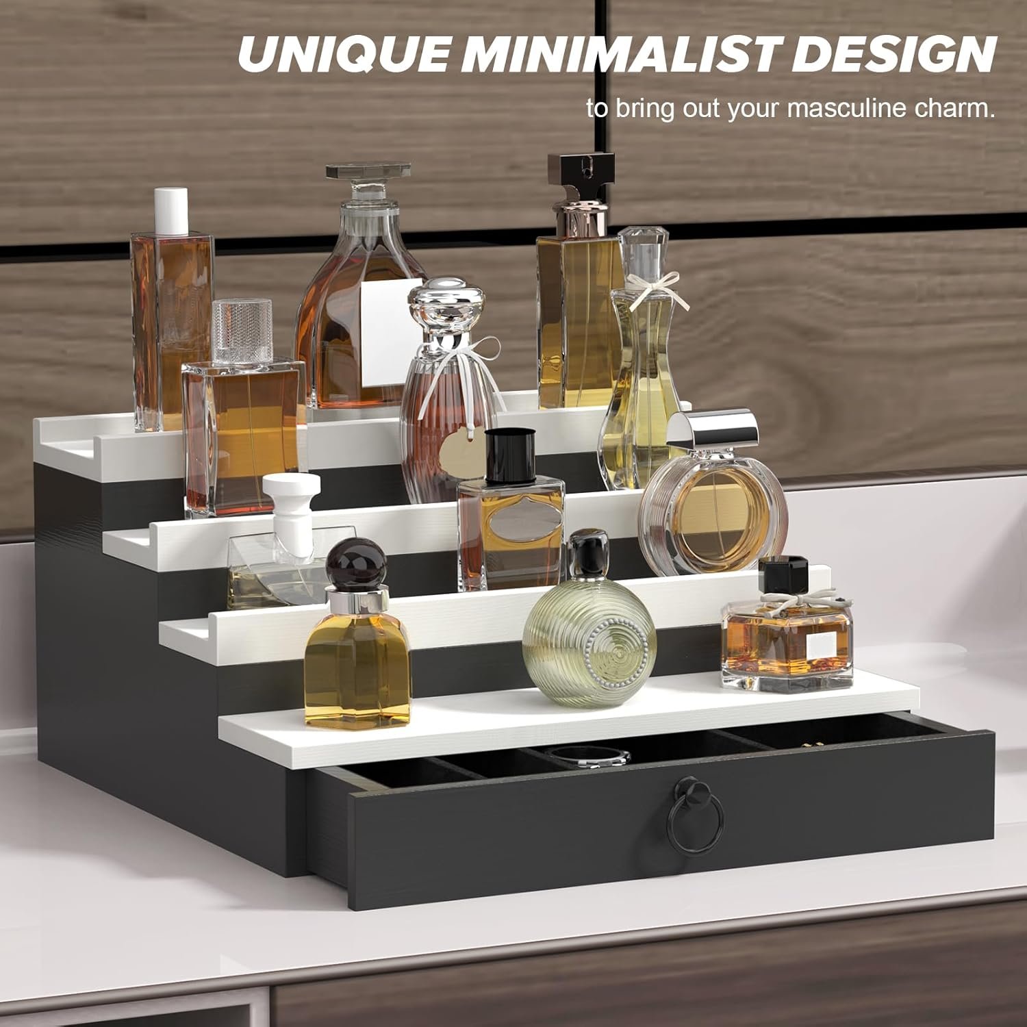 STYLISH SIMPLICITY TO COMPLETE YOUR TEMPERAMENT: With its smooth lines and compact design, this men’s perfume organizer is simple yet elegant, enhancing the beauty of your space and matching your fashion taste. Combining practicality and beauty in one, the simple monochrome colour blends in with your home style. The unique minimalist design brings out your masculine charm.