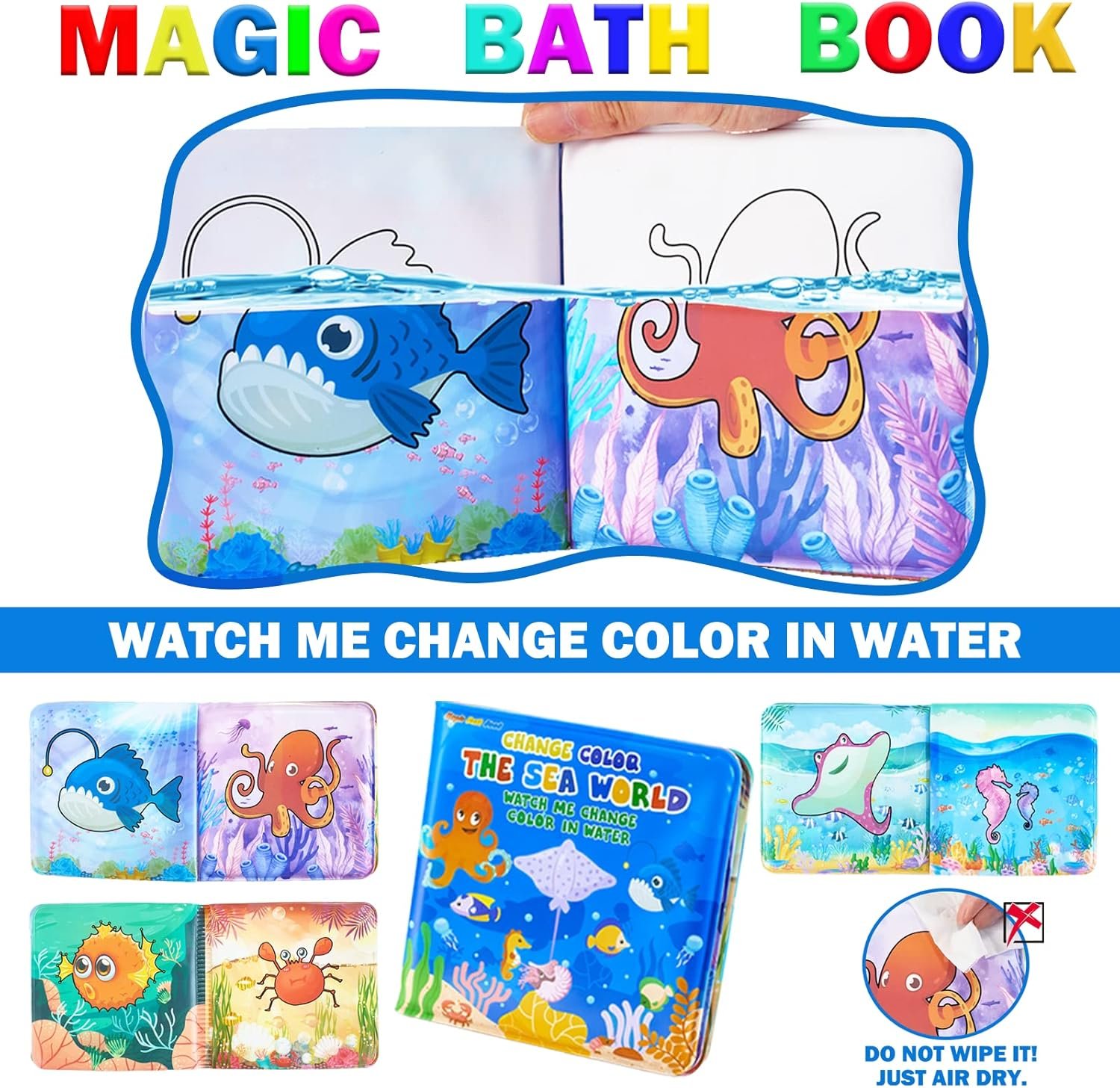【COLOR CHANGING TOYS】: 10 packs of sea creatures toys magically change colors in warm water above 33℃. The bath book can magically change color and come in different patterns when it exposed to water. Vivid designs and magical skills will be a big surprise for kids.