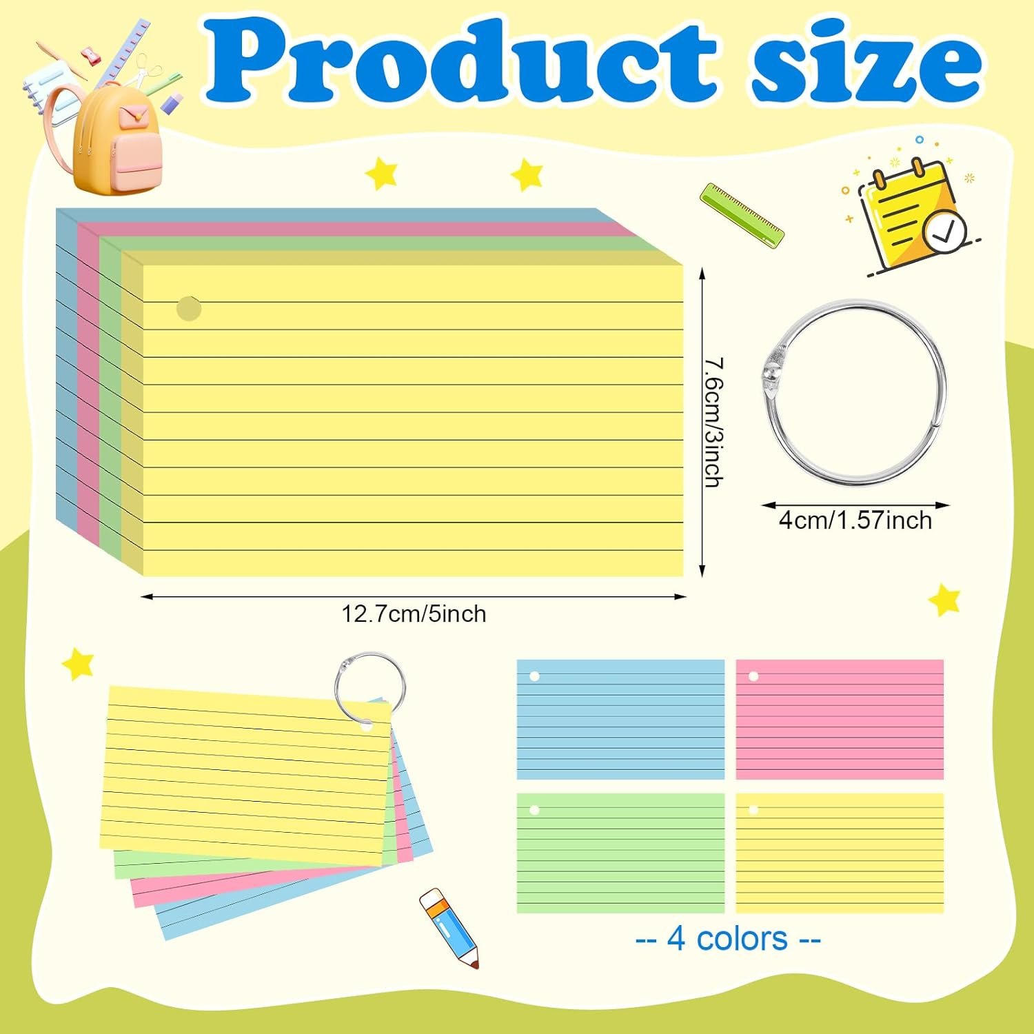 Package Includes: You will get 200pcs heavyweight index cards with 4 Rings, including 4 different colors, 50 pieces of each color