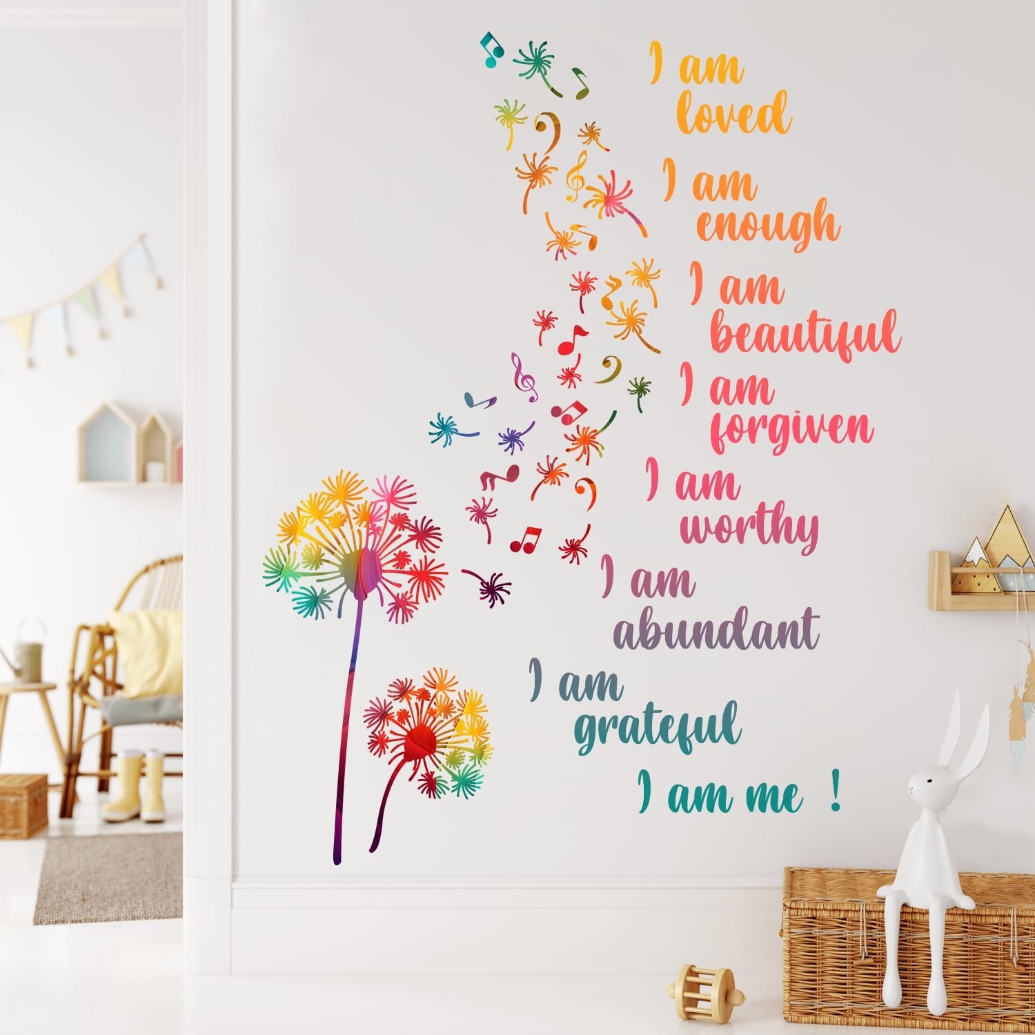 Colorful Dandelion Wall Stickers, Motivational Quote I Am Affirmation Vinyl Wall Decals, Removable Dandelion Flying Musical Note DIY Wall Art for Kids Bedroom Office Classroom Decor